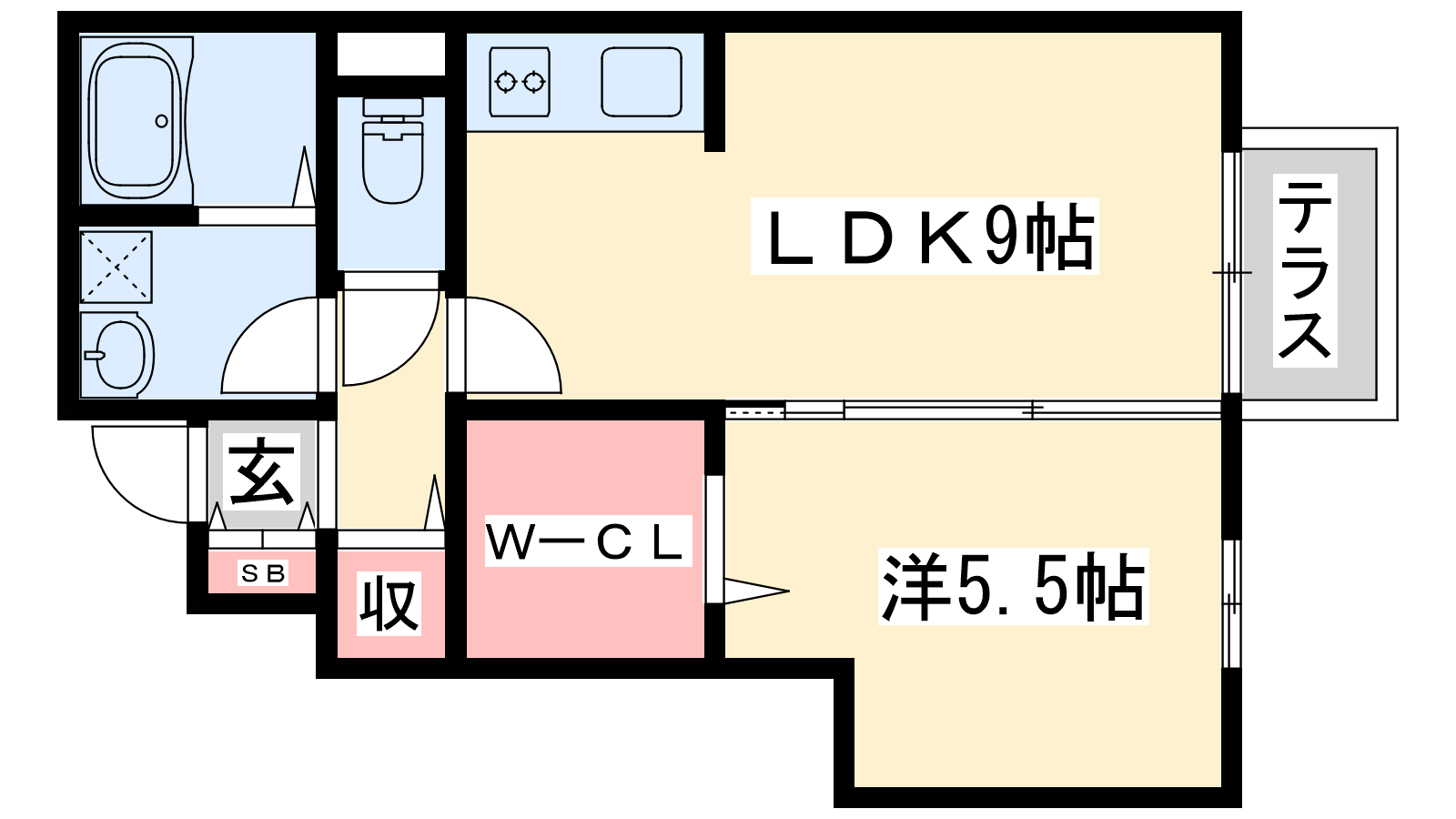 - LDK9帖、洋室5.5帖