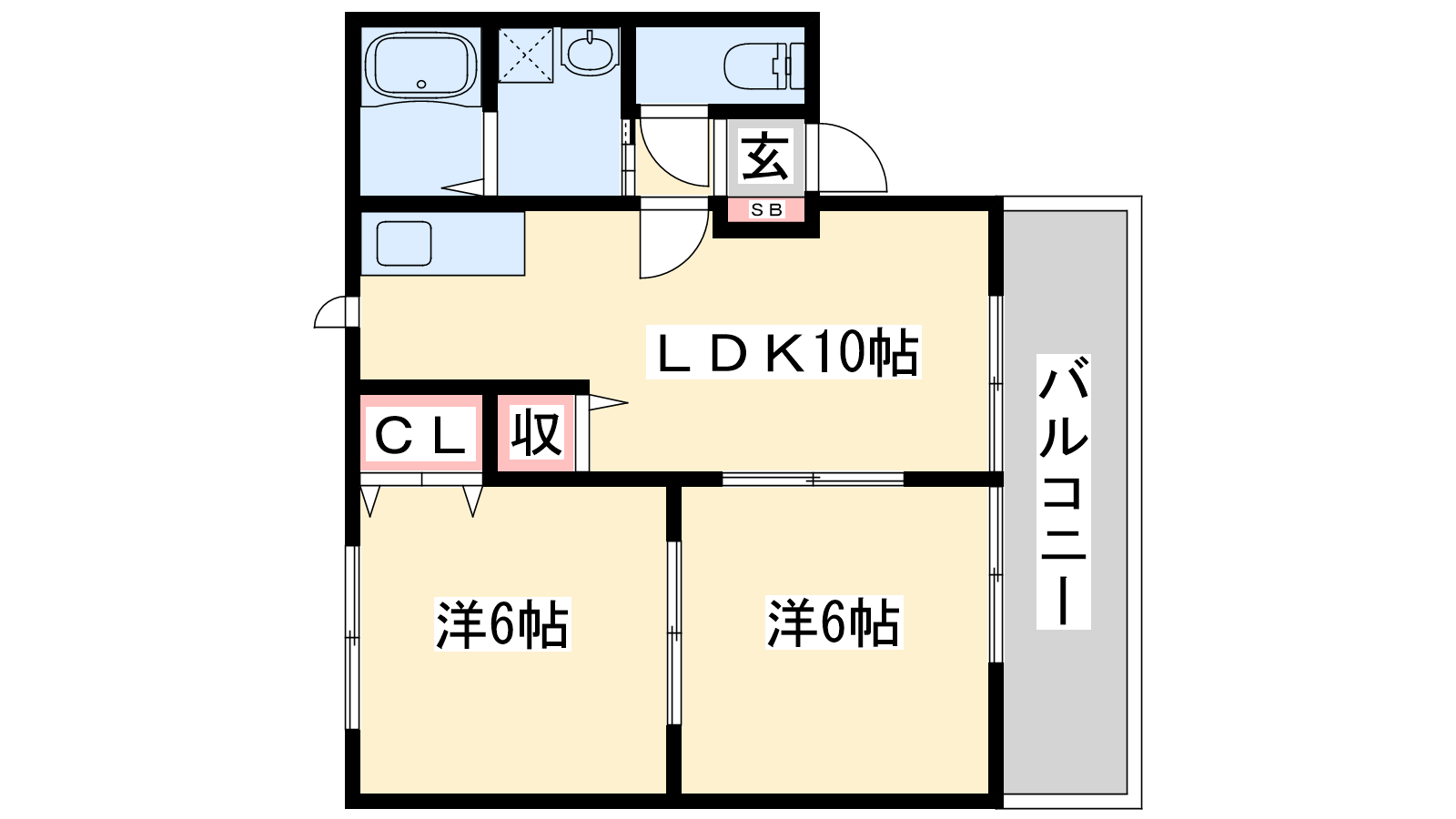 - LDK10帖、洋室6帖、洋室6帖