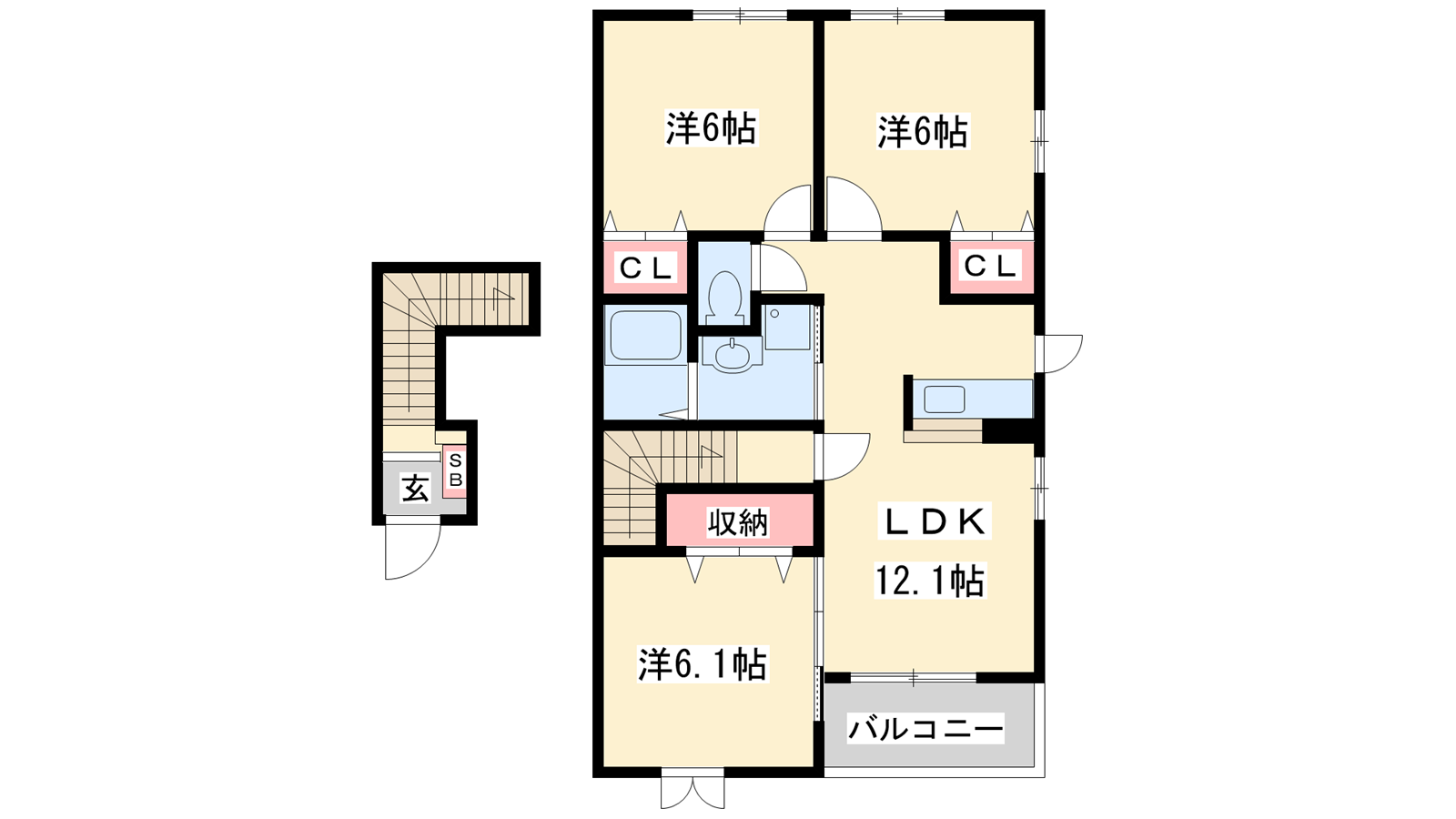 - SLDK12.1帖、洋室6.1帖、洋室6帖、洋室6帖