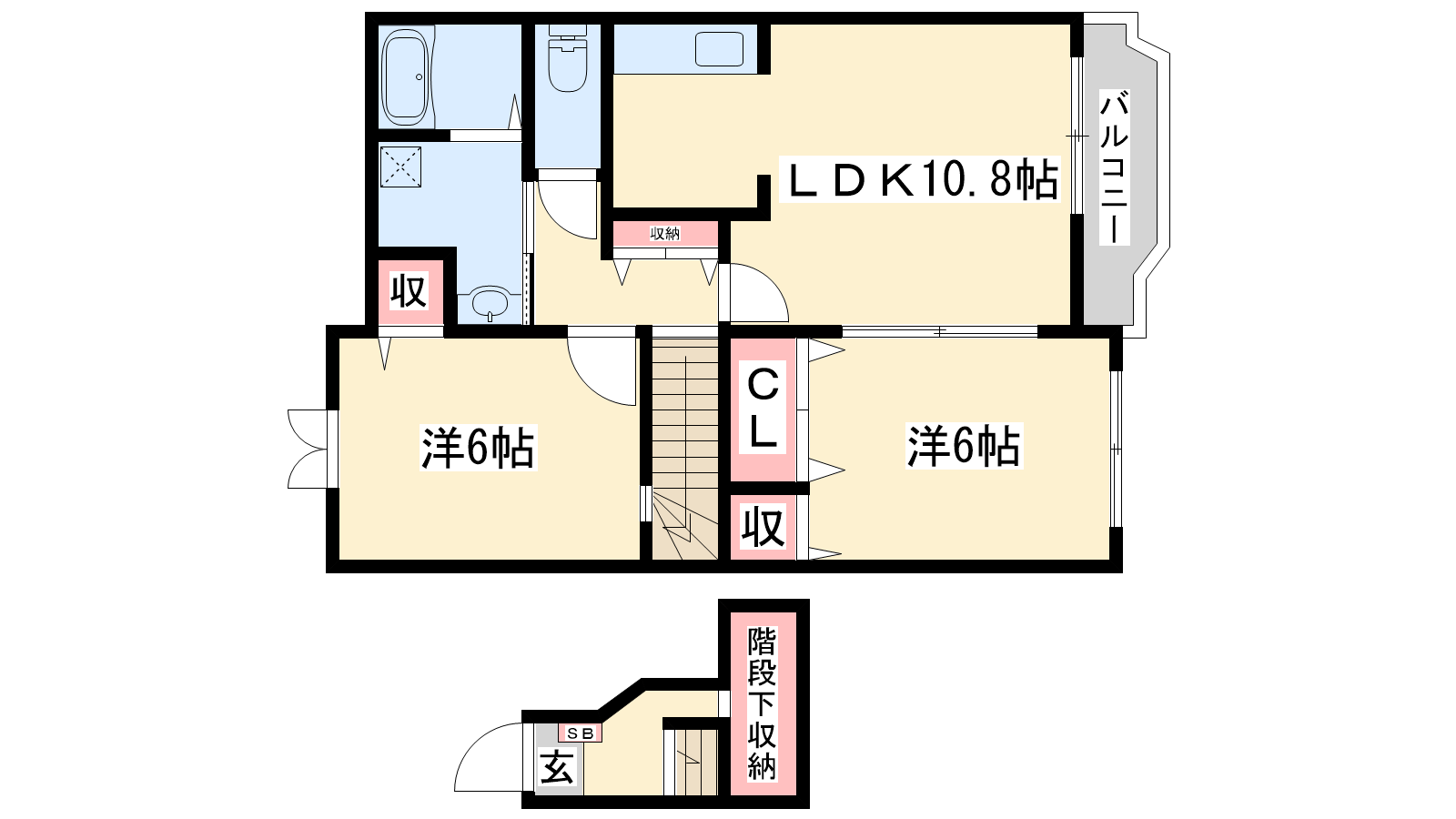 - LDK10.8帖、洋室6帖、洋室6帖