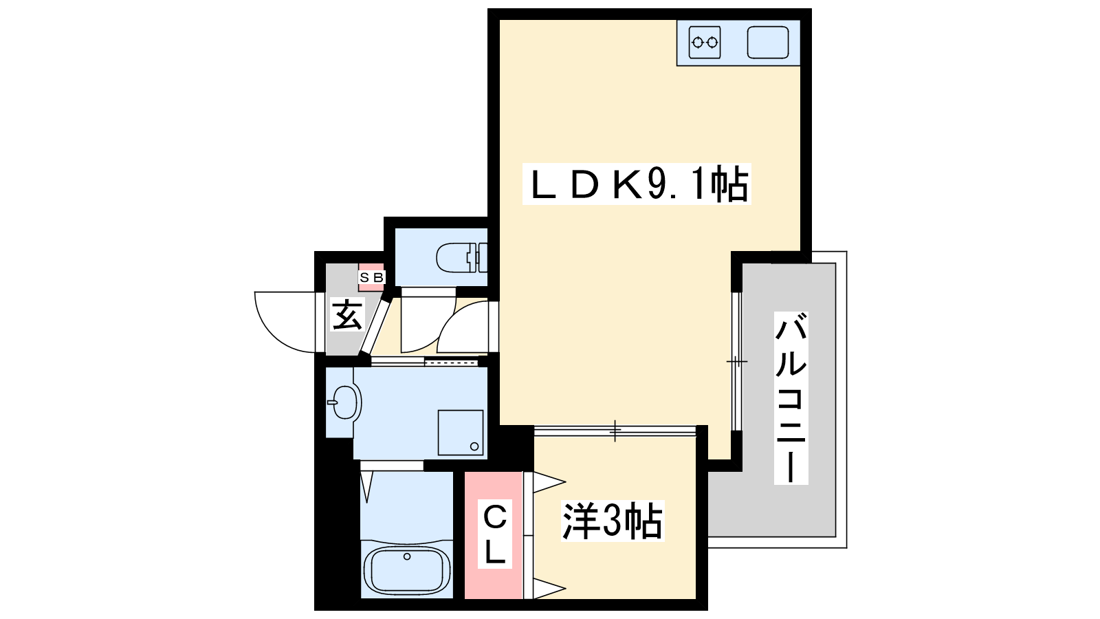 - LDK9.1帖、洋室3帖