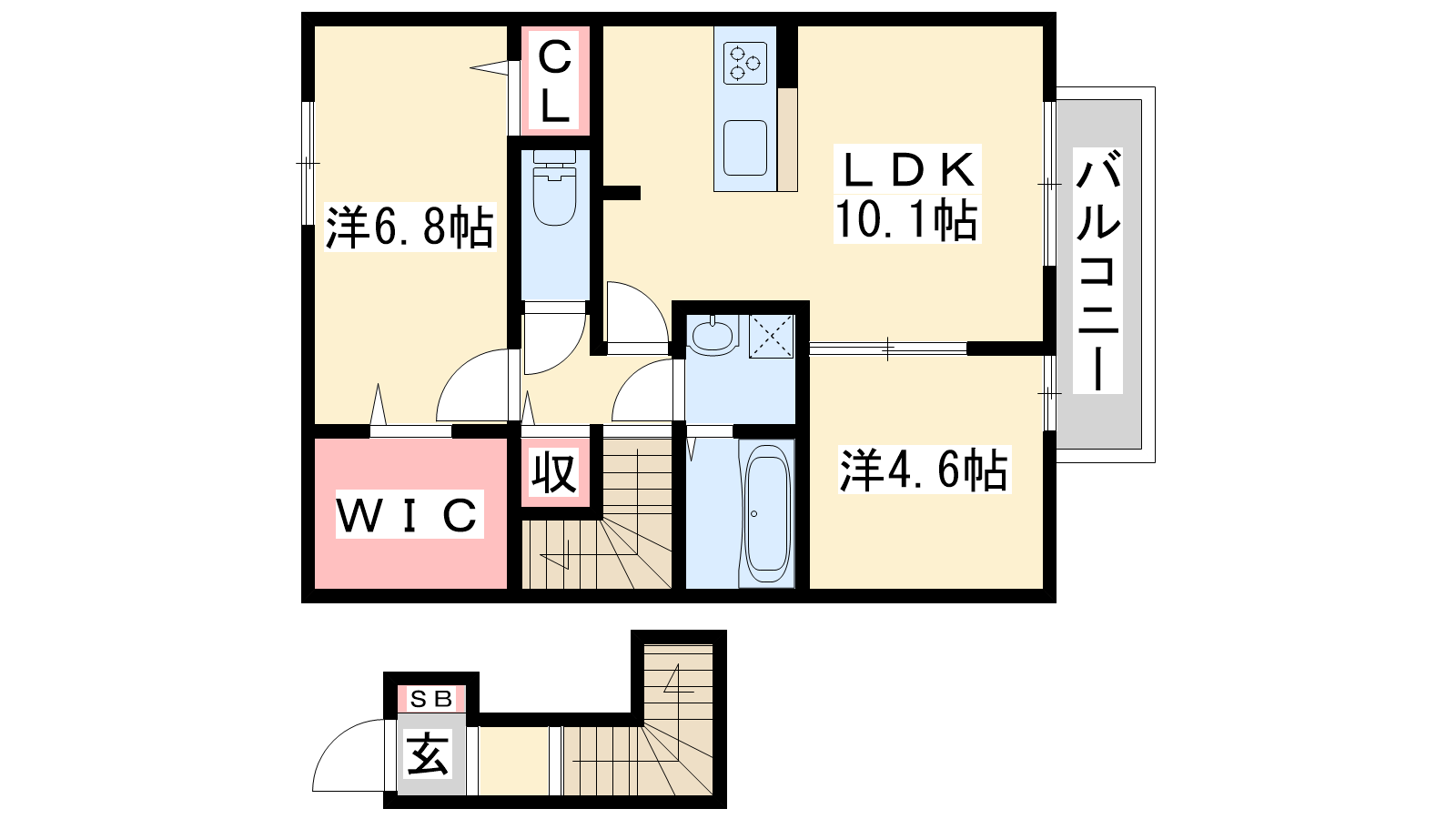 - LDK10.1帖、洋室6.8帖、洋室4.6帖