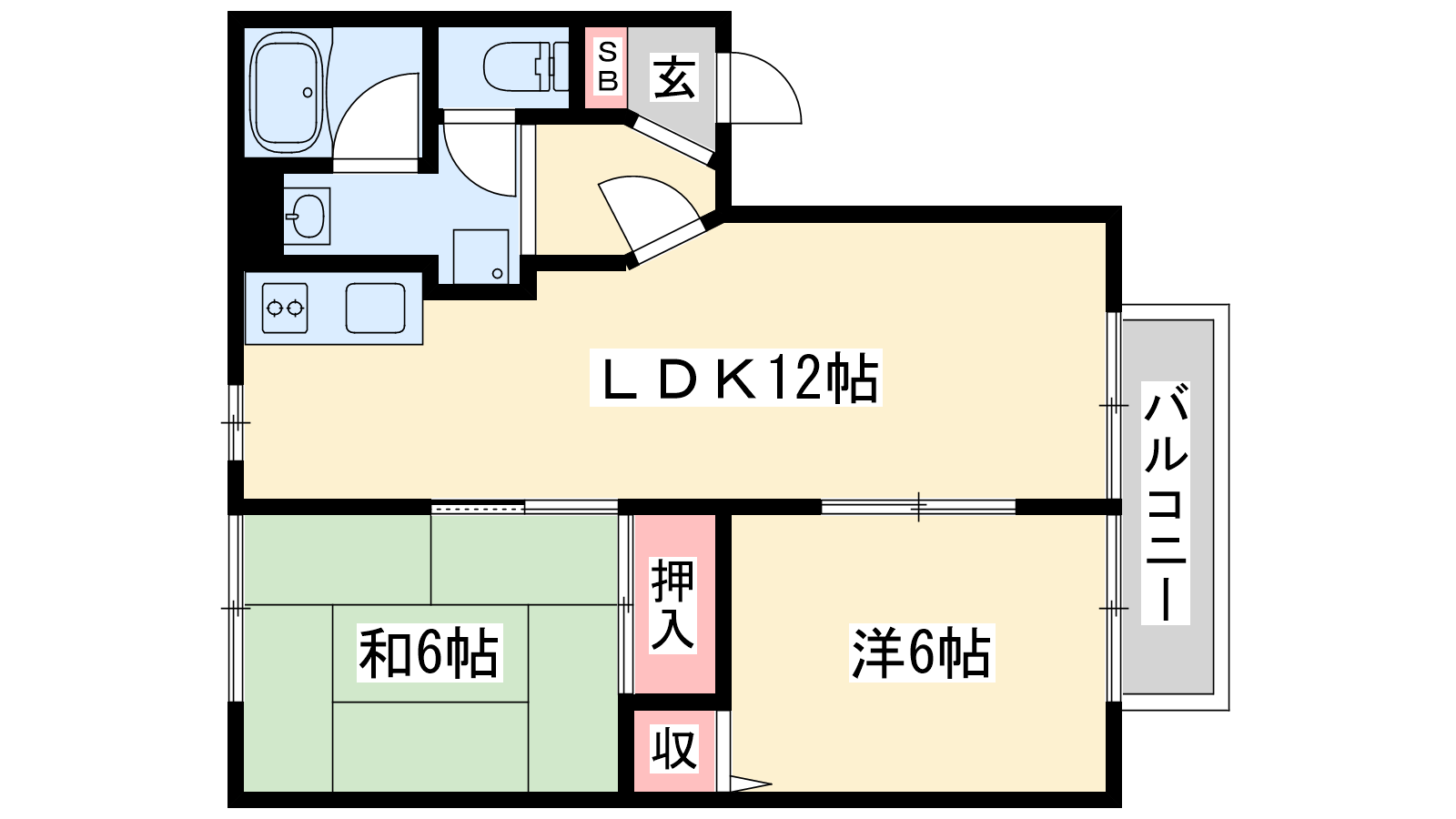 - LDK12帖、洋室6帖、和室6帖