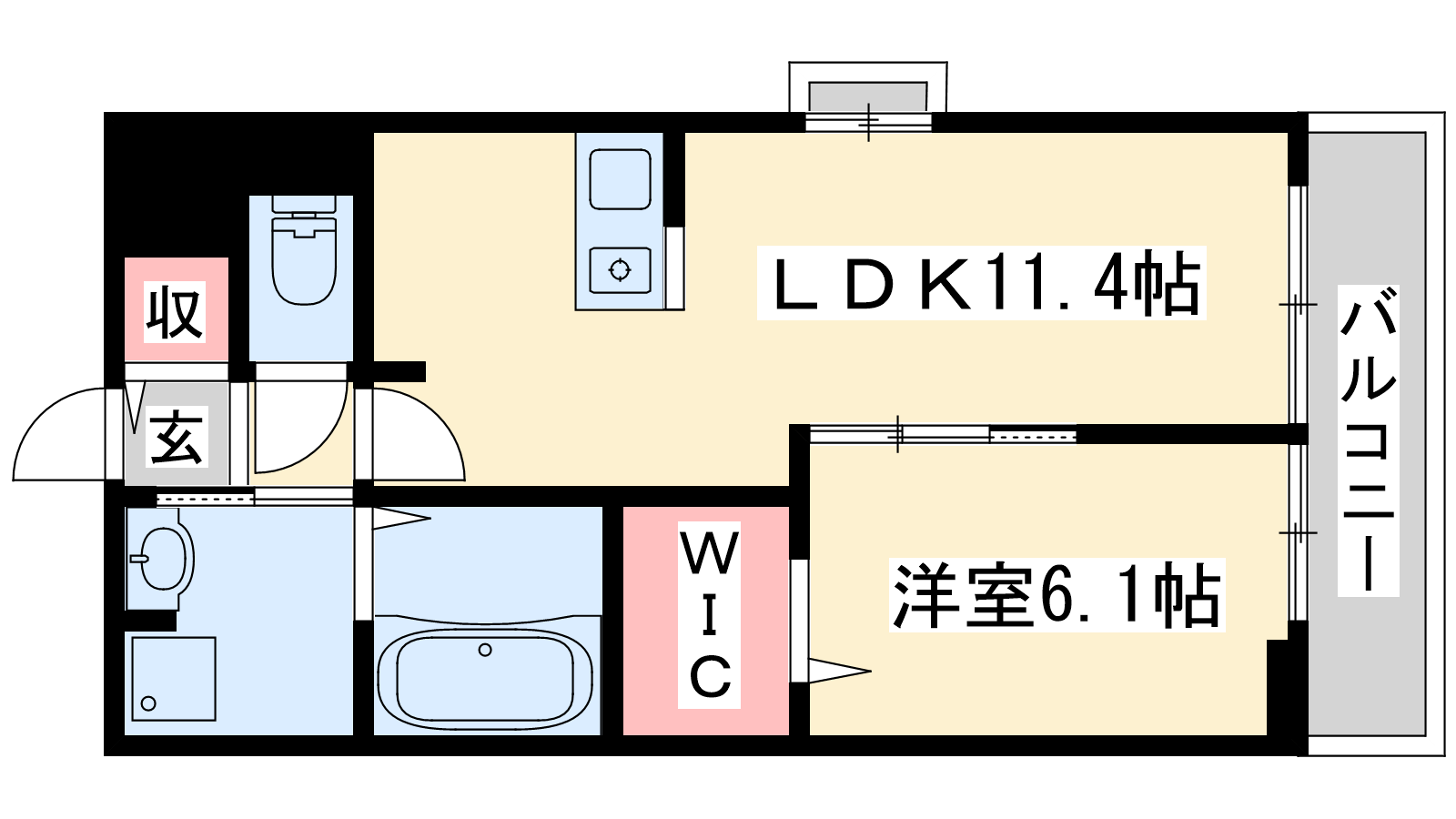 - LDK11.4帖、洋室6.1帖
