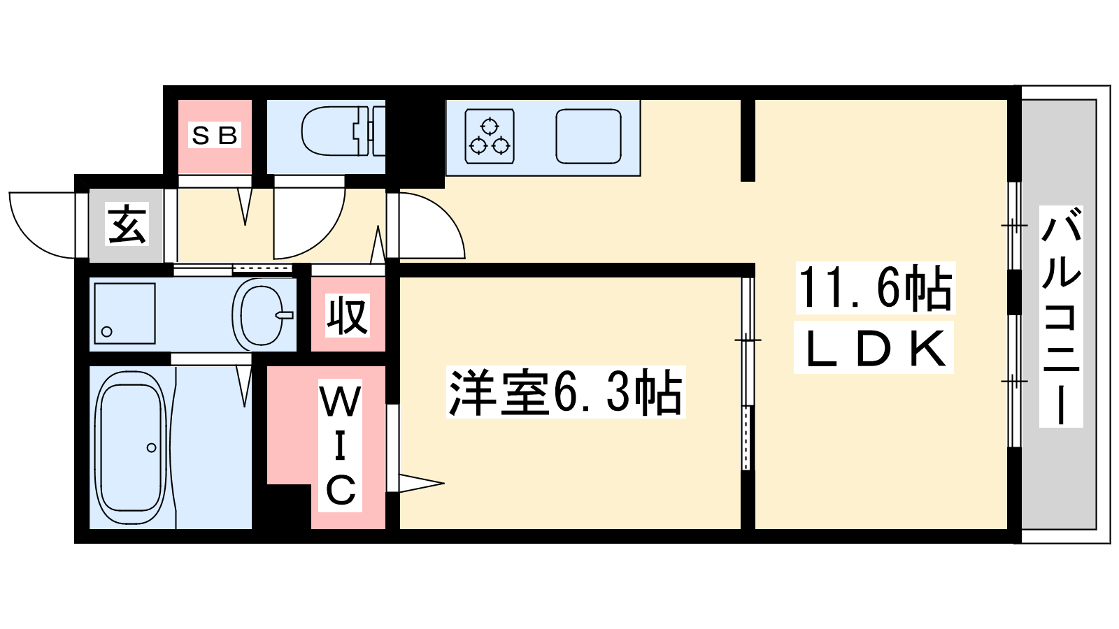 - LDK11.6帖、洋室6.3帖