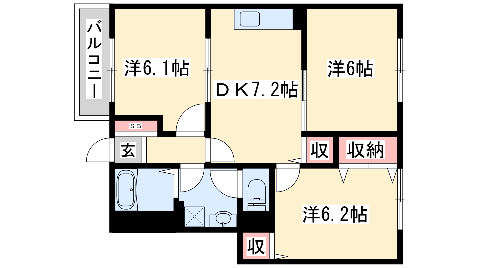 - DK7.2帖、洋室6.2帖、洋室6.1帖、洋室6帖