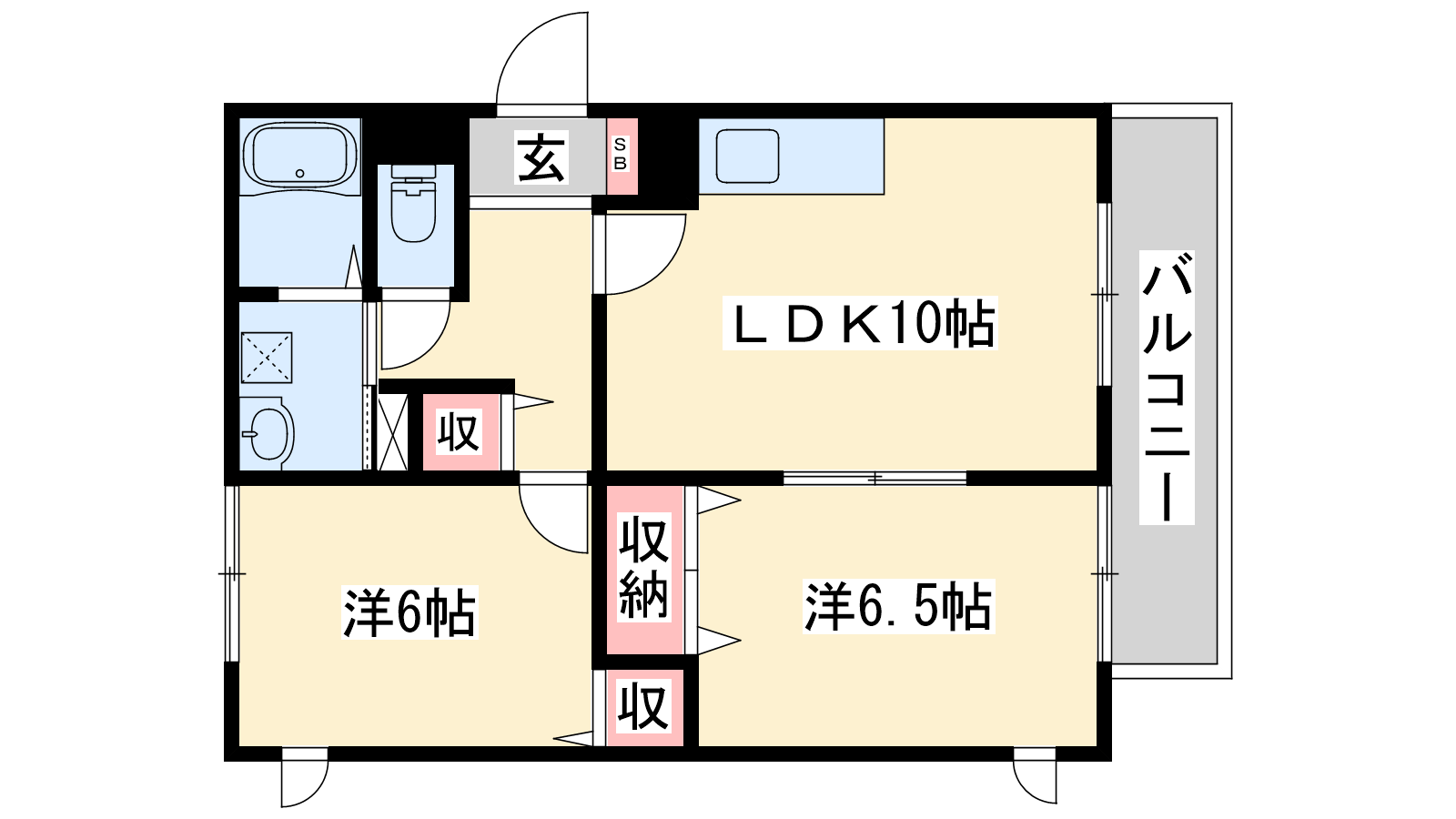 - LDK10帖、洋室6.5帖、洋室6帖