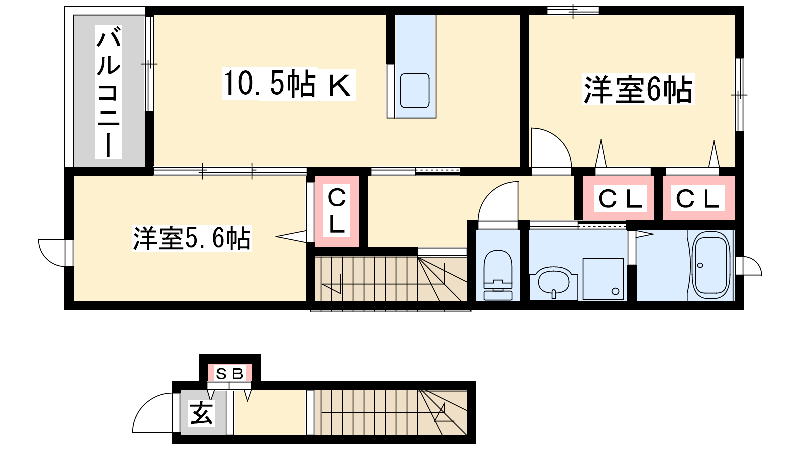 - LDK10.5帖、洋室6帖、洋室5.6帖