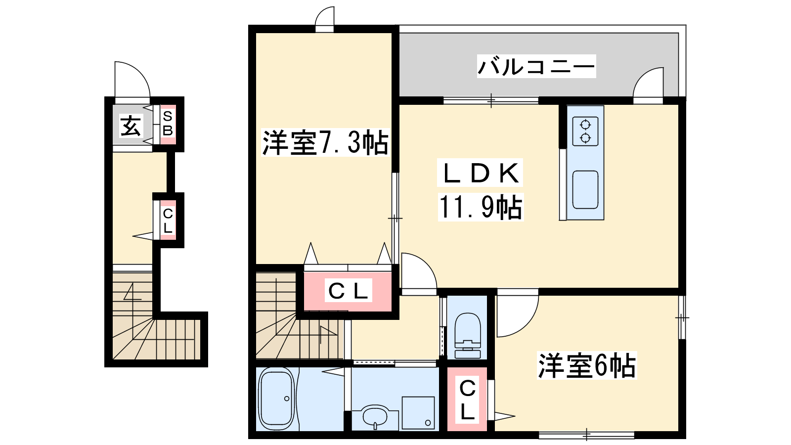 - LDK11.9帖、洋室7.3帖、洋室6帖