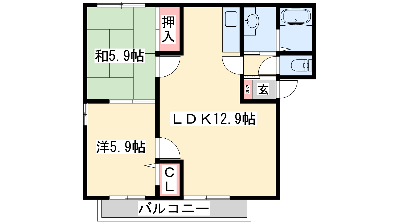 - LDK12.9帖、洋室5.9帖、洋室5.9帖