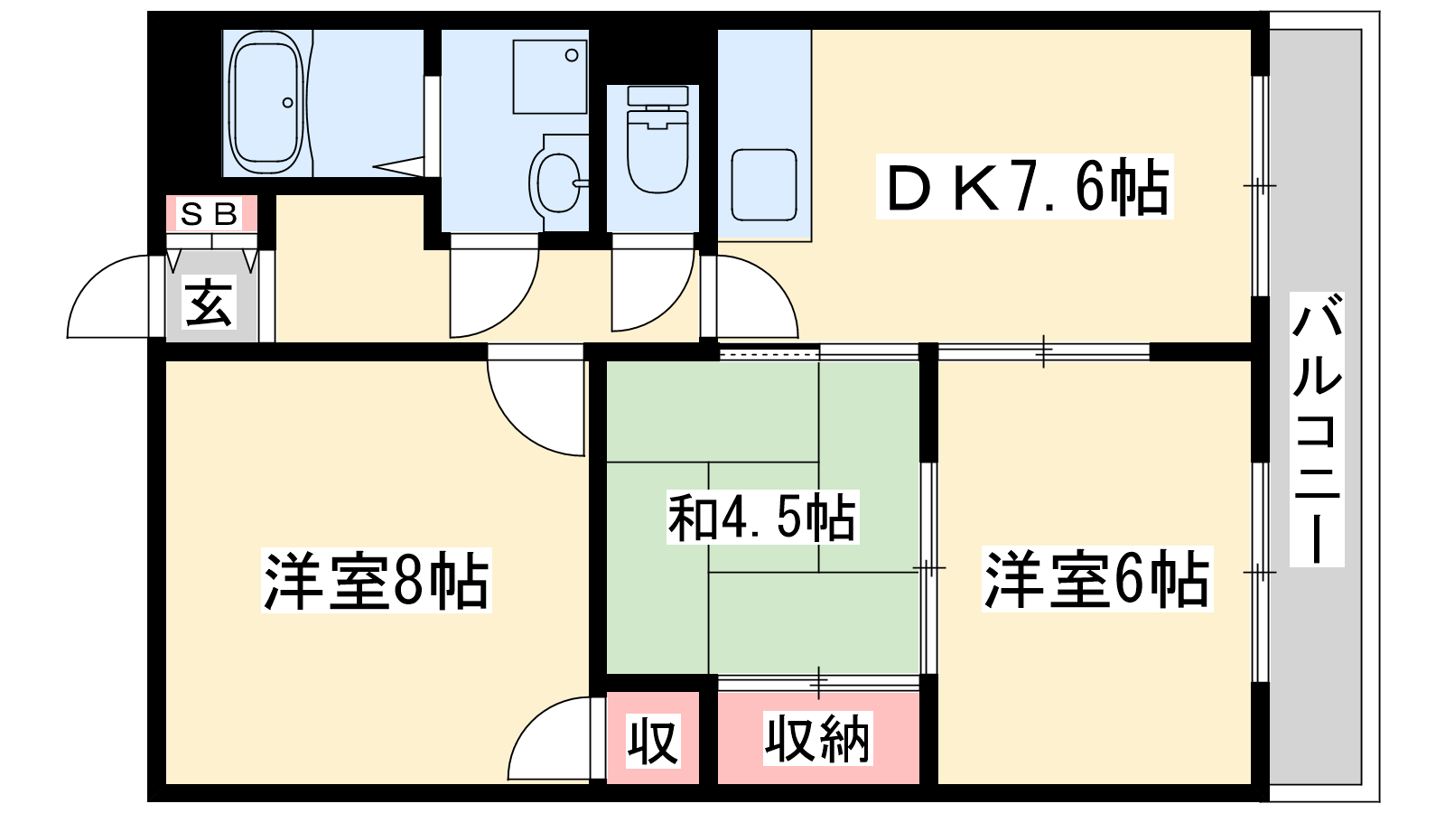 - DK7.6帖、洋室8帖、洋室6帖、和室4.5帖