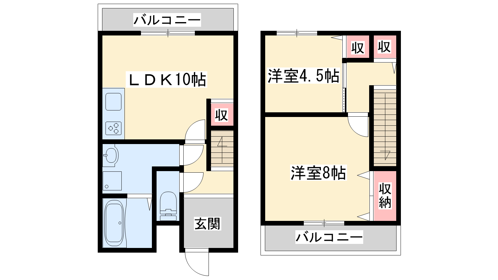 - LDK10帖、洋室8帖、洋室4.5帖