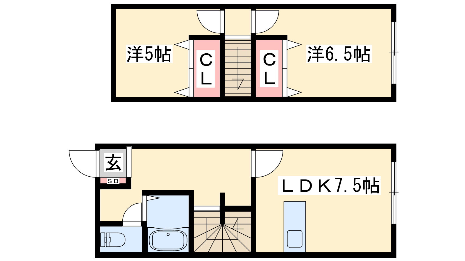 - LDK7.5帖、洋室6.5帖、洋室5帖