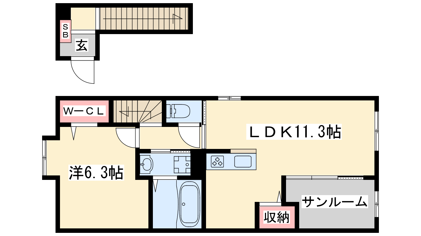 - LDK11.3帖、洋室6.3帖