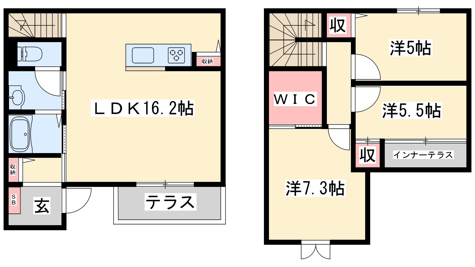 - LDK16.2帖、洋室7.3帖、洋室5.5帖、洋室5帖