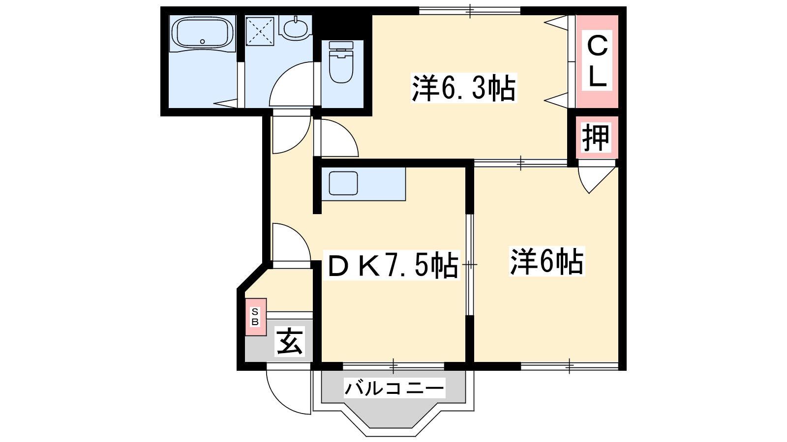 - DK7.5帖、洋室6.3帖、洋室6帖