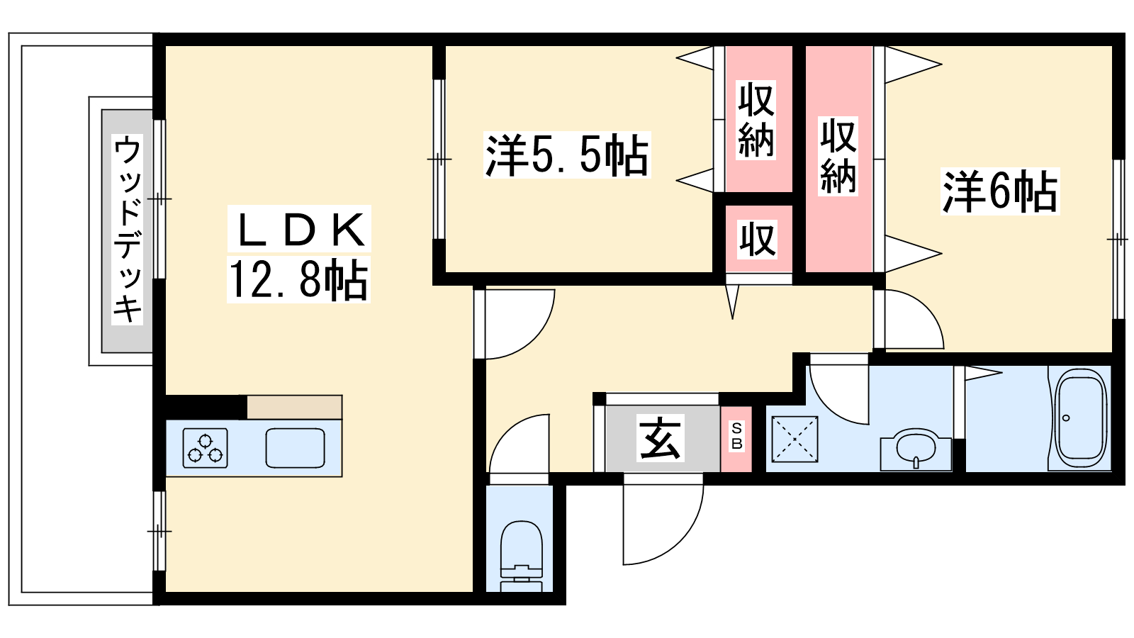 - LDK12.8帖、洋室6帖、洋室5.5帖