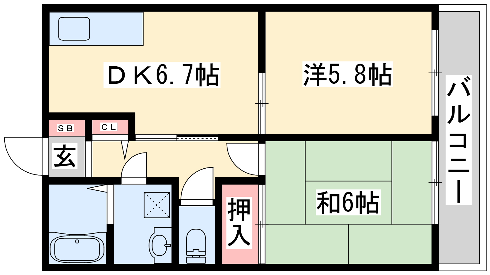 - DK6.7帖、洋室6帖、洋室5.8帖