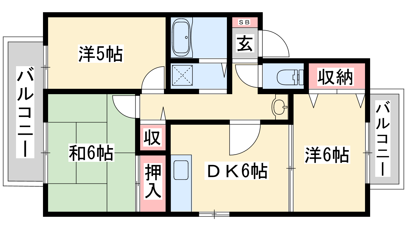- DK6帖、和室6帖、洋室6帖、洋室5帖