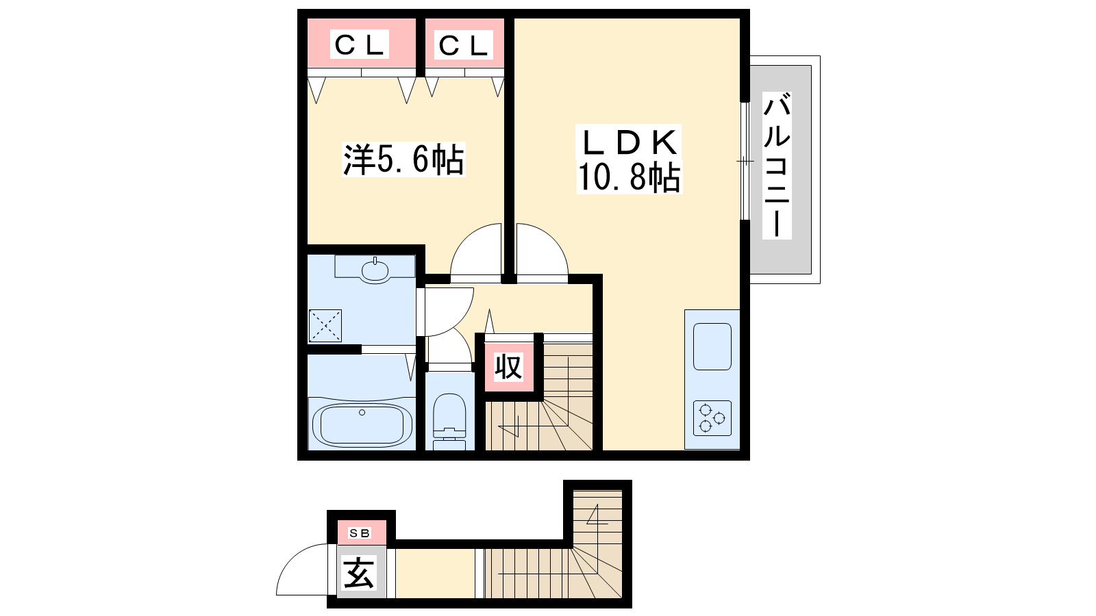 - LDK10.8帖、洋室5.6帖