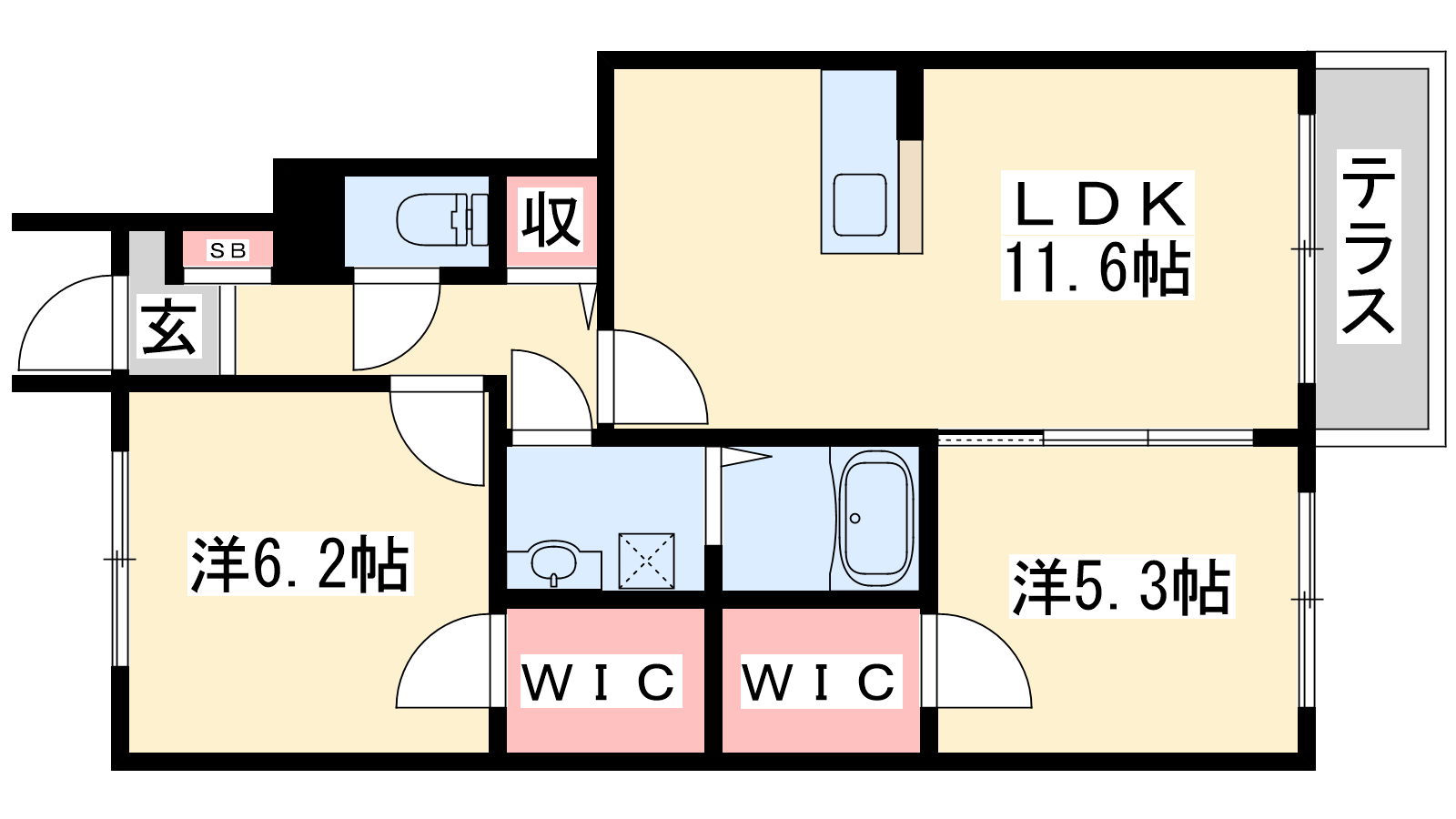 - LDK11.6帖、洋室6.2帖、洋室5.3帖