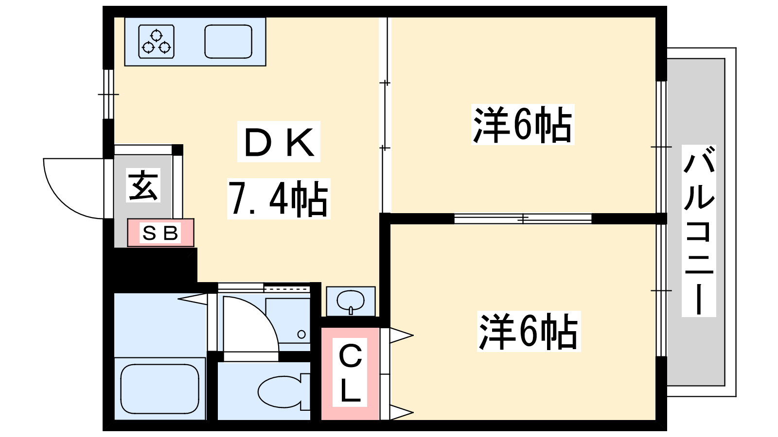 - DK7.4帖、洋室6帖、洋室6帖