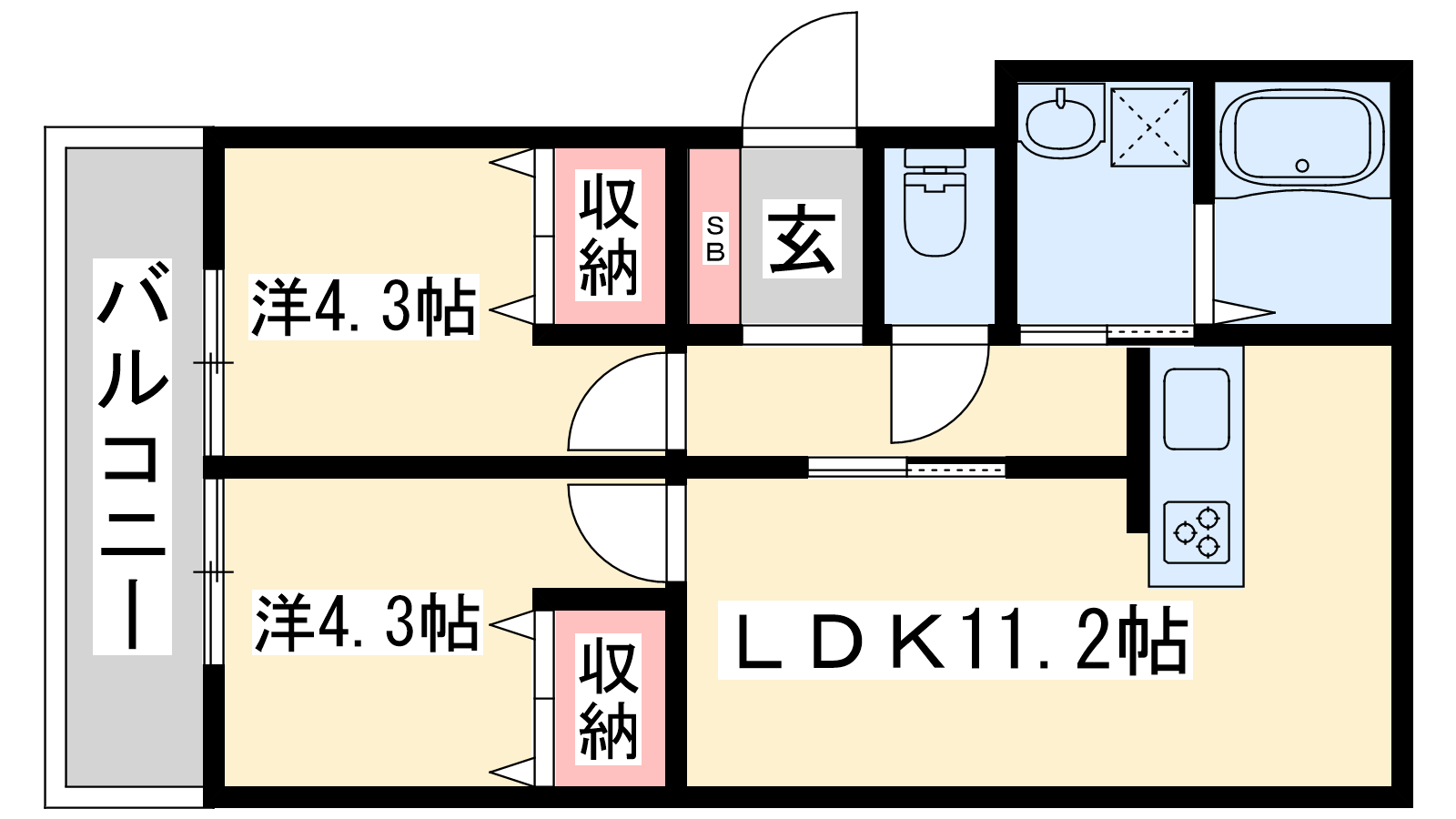 - LDK11.2帖、洋室4.3帖、洋室4.3帖