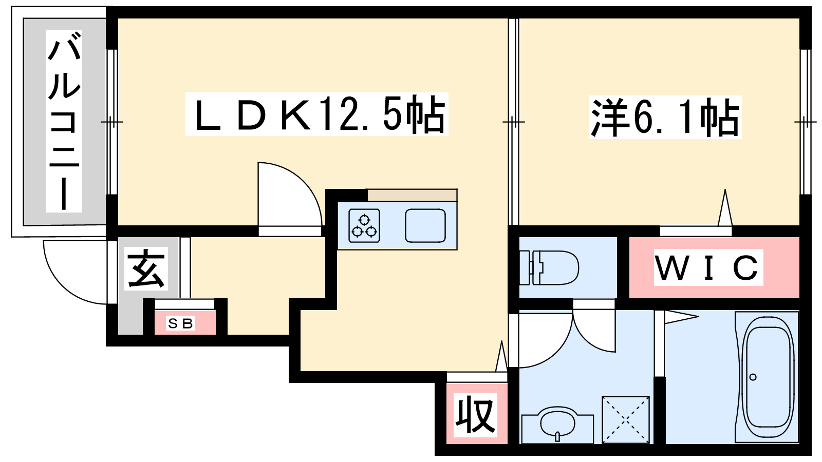 - LDK12.5帖、洋室6.1帖