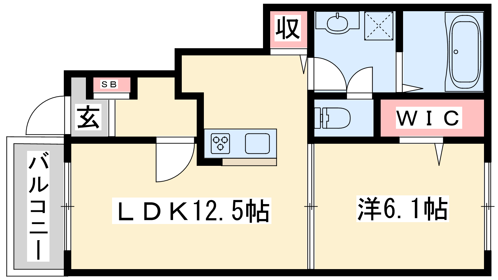 - LDK12.5帖、洋室6.1帖