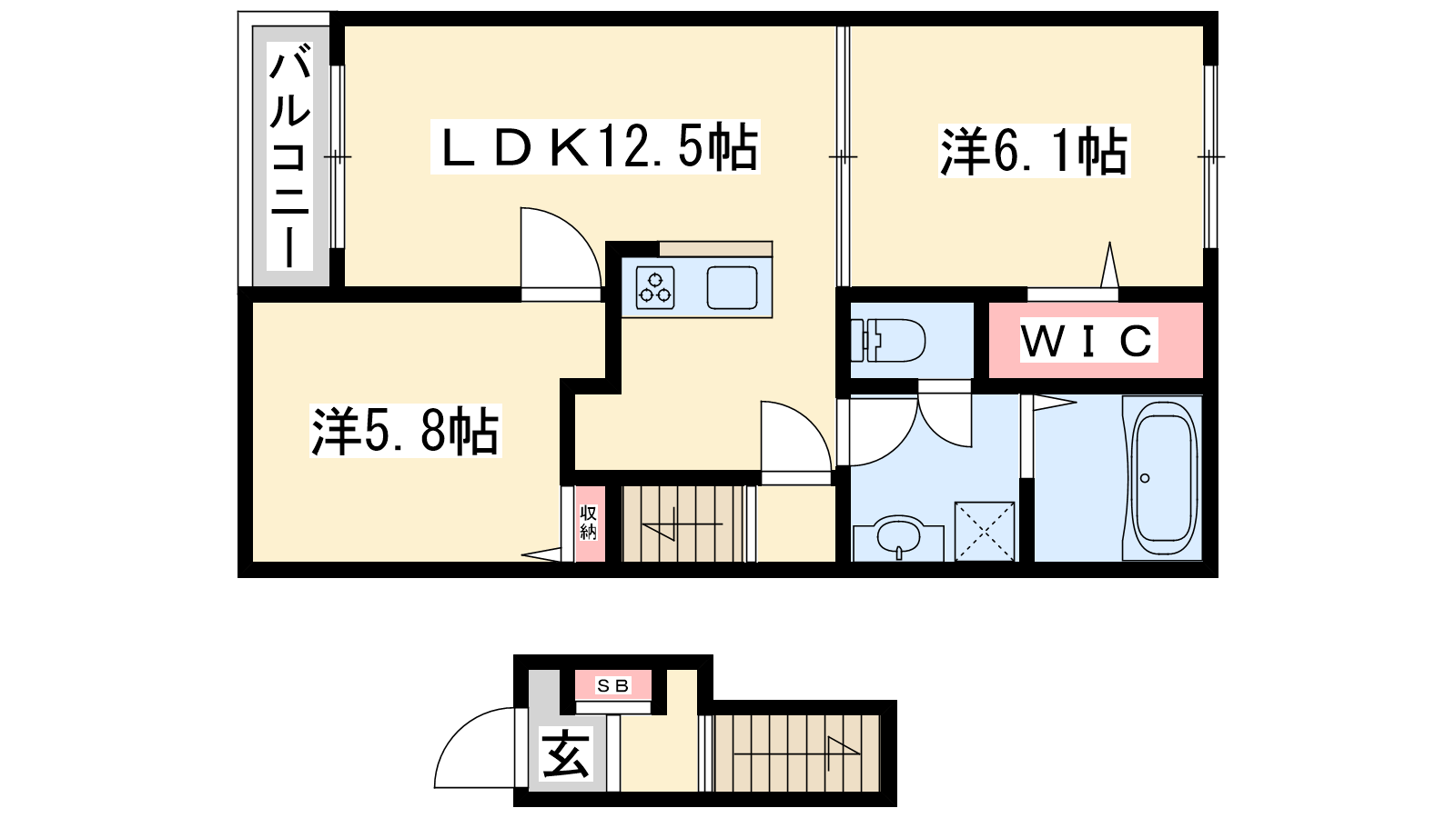 - LDK12.5帖、洋室6.1帖、洋室5.8帖