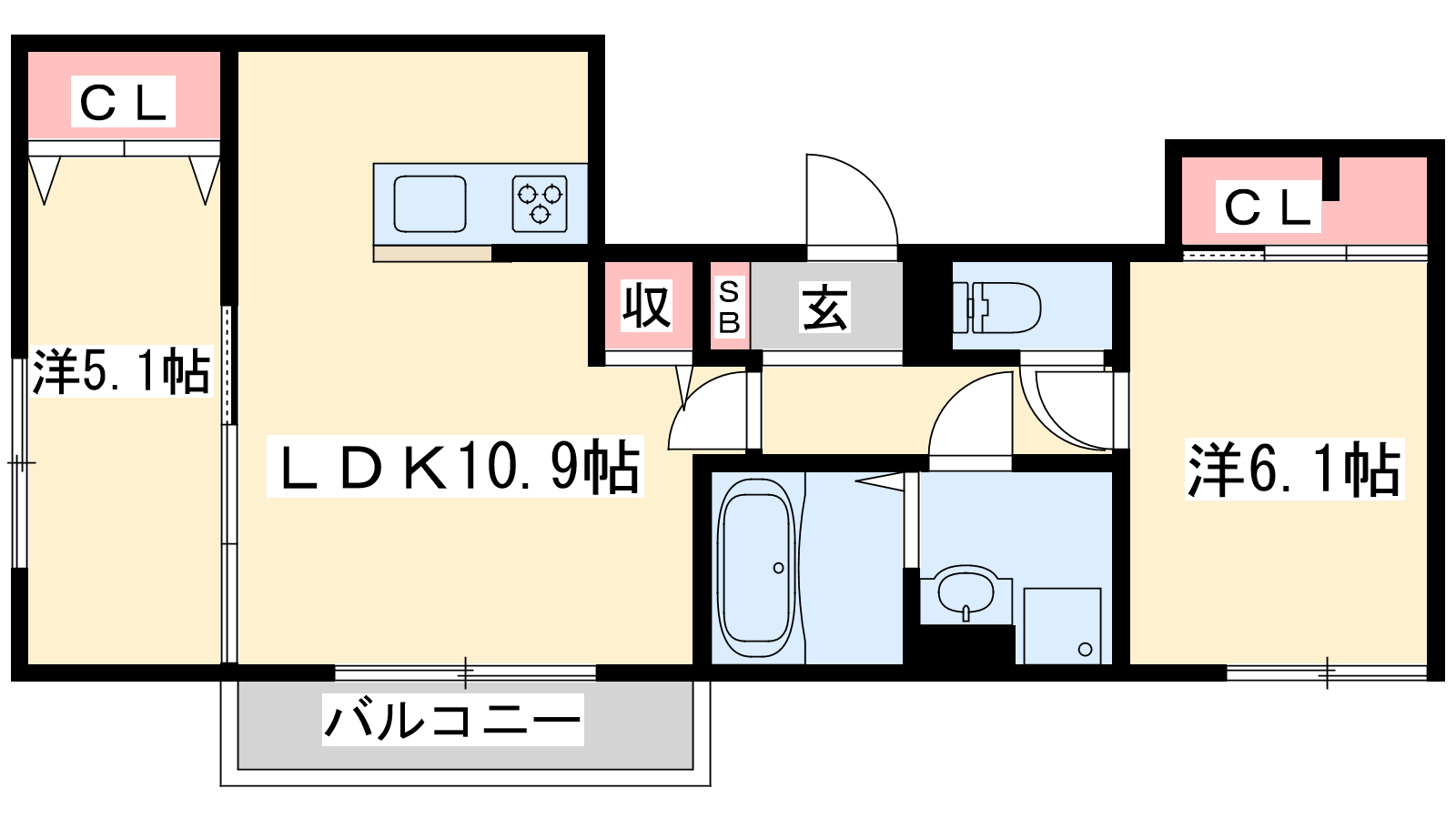 - LDK10.9帖、洋室6.1帖、洋室5.1帖