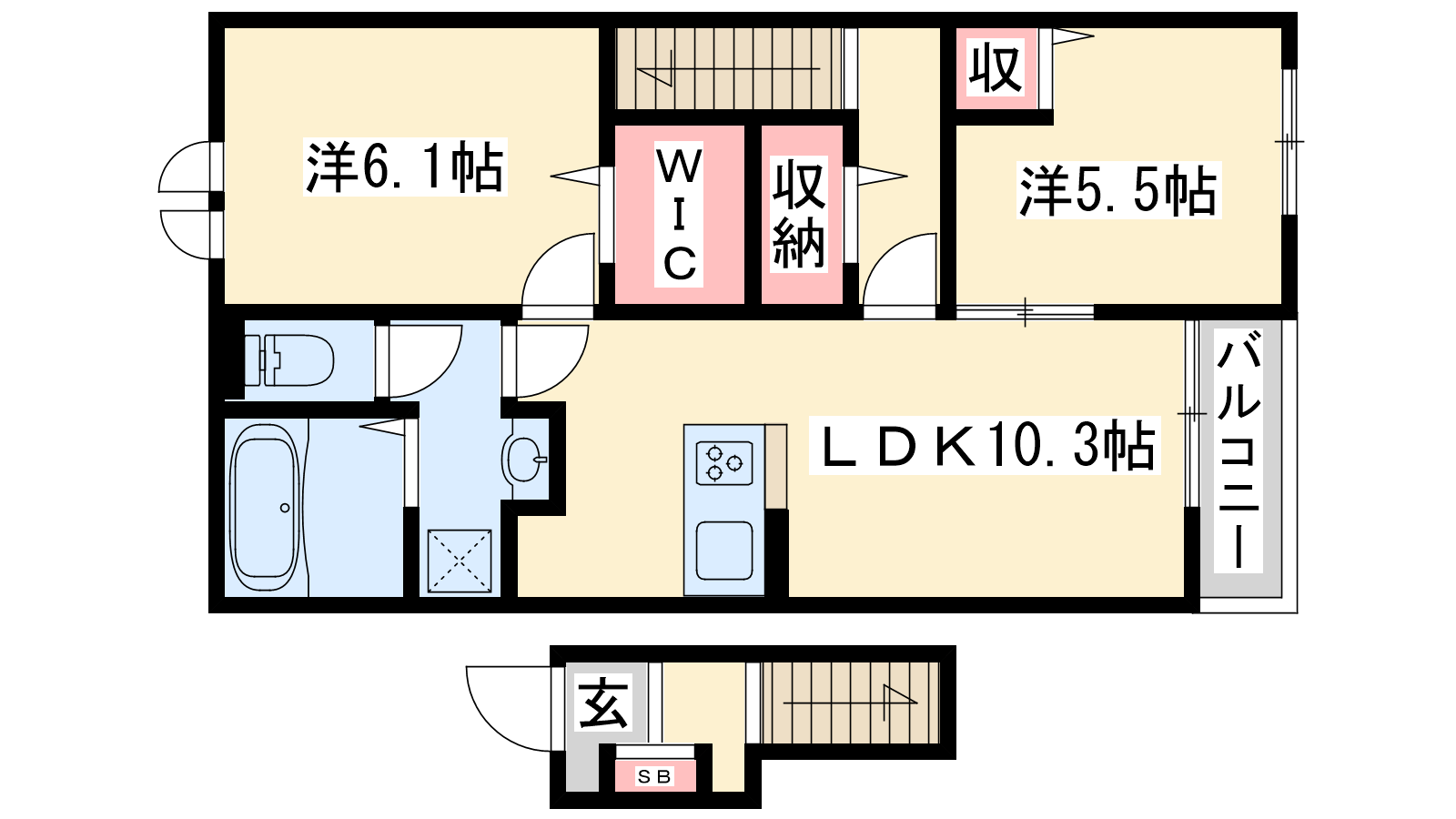 - LDK10.3帖、洋室6.1帖、洋室5.5帖