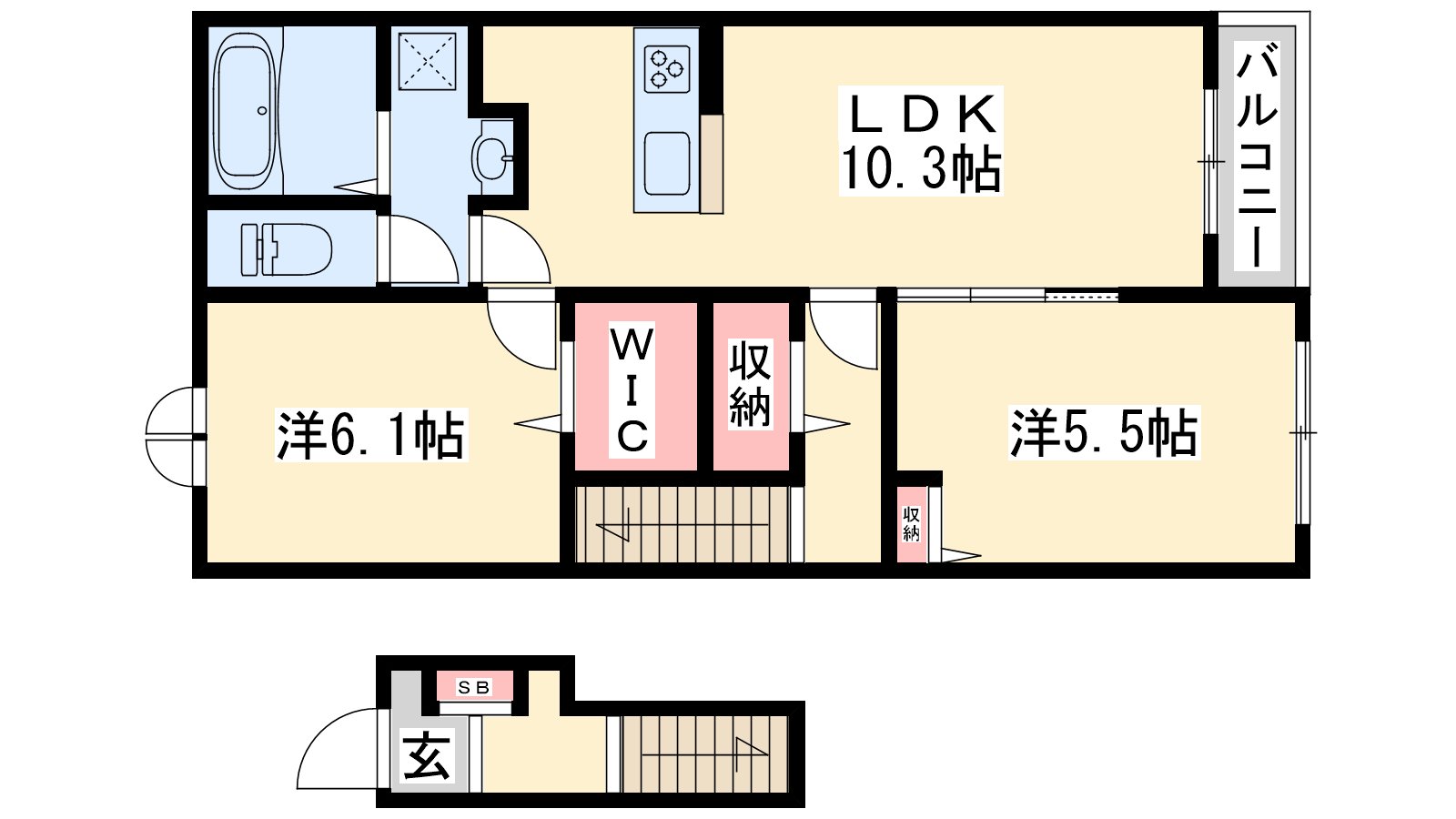 - LDK10.3帖、洋室6.1帖、洋室5.5帖