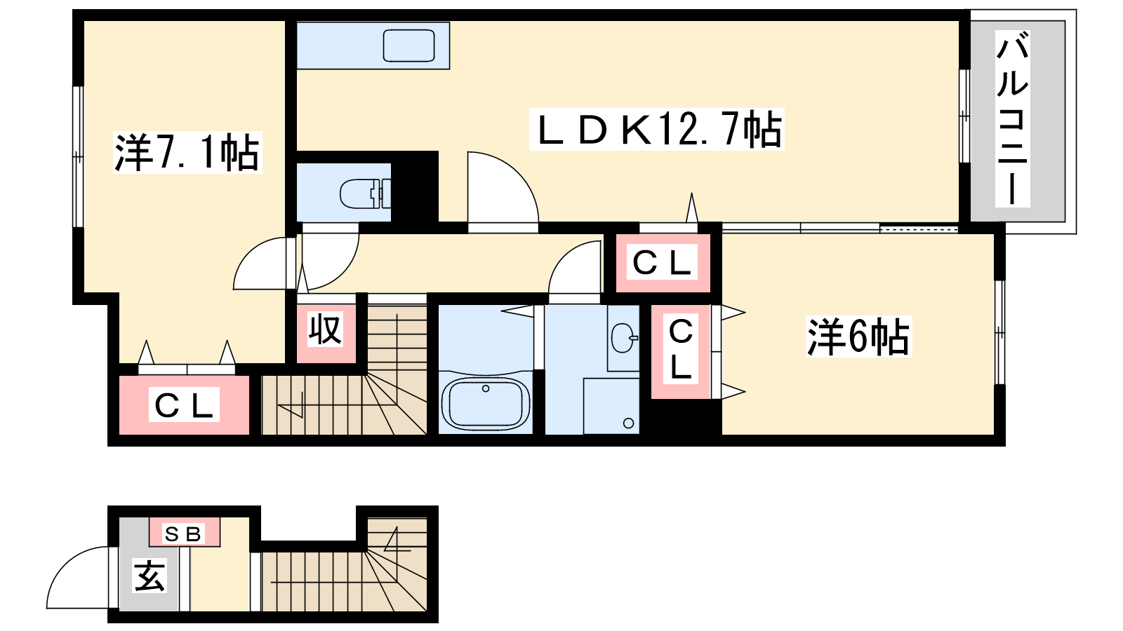 - LDK12.7帖、洋室7.1帖、洋室6帖