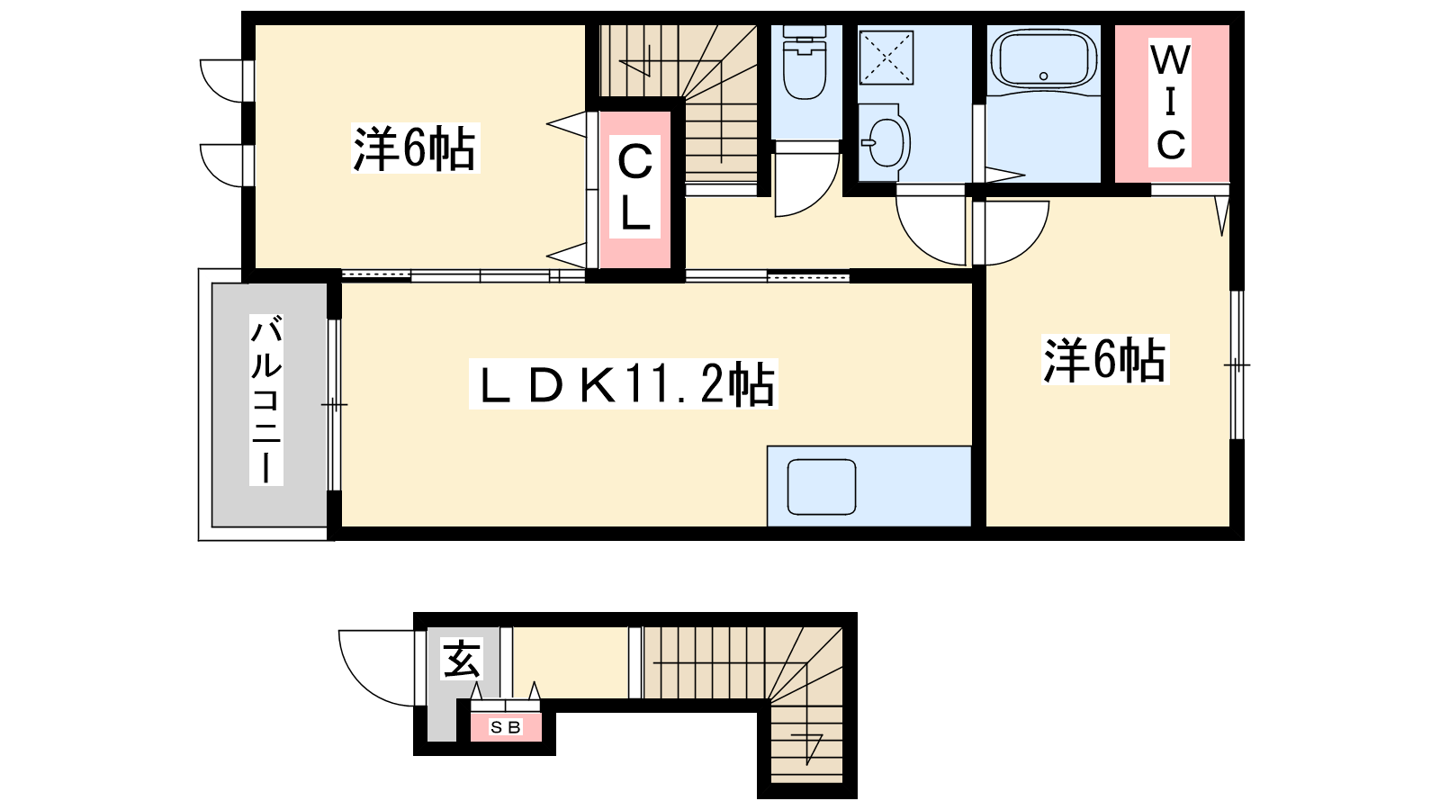 - LDK11.2帖、洋室6帖、洋室6帖