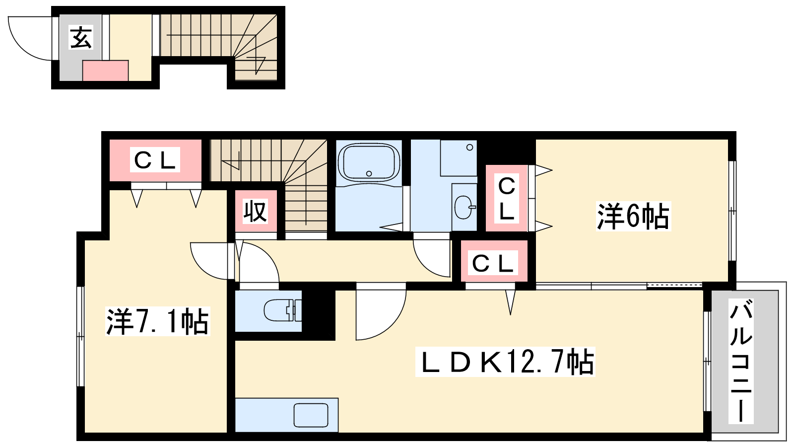 - LDK12.7帖、洋室7.1帖、洋室6帖