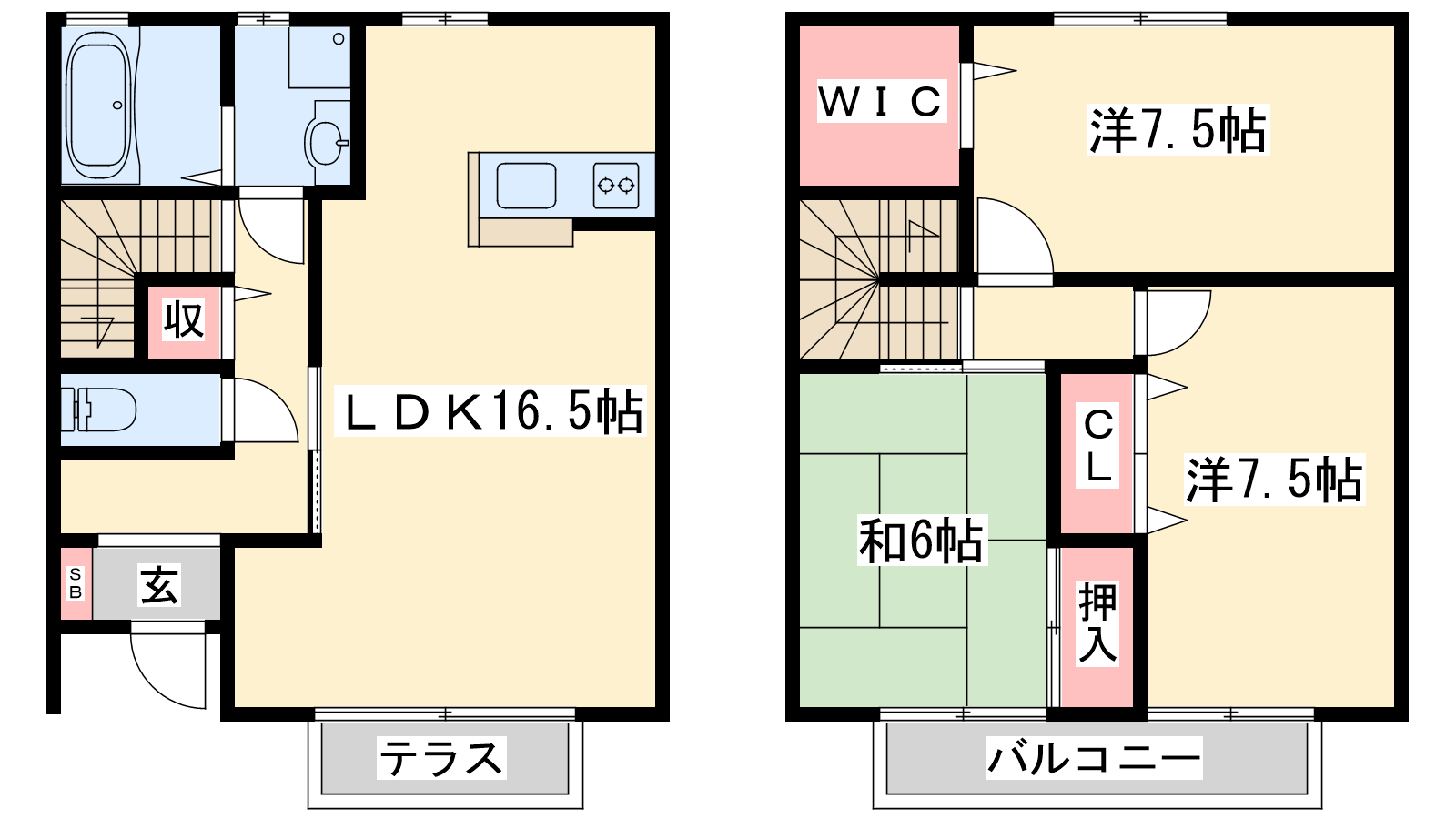 - LDK16.5帖、洋室7.5帖、洋室7.5帖、和室6帖