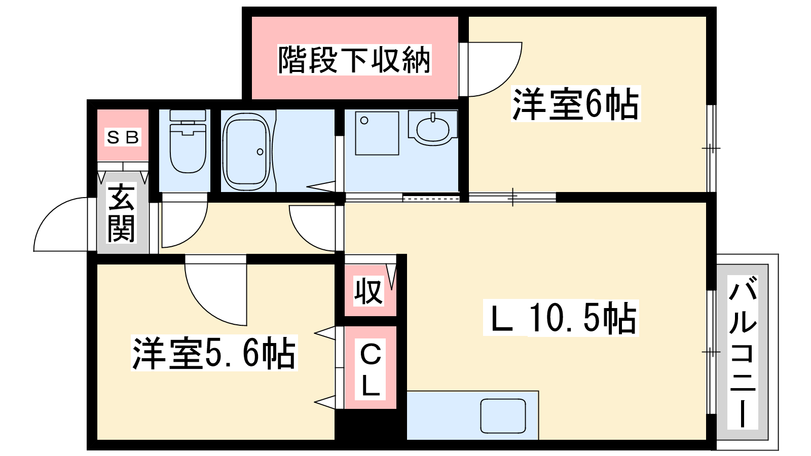 - LDK10.5帖、洋室6帖、洋室5.6帖