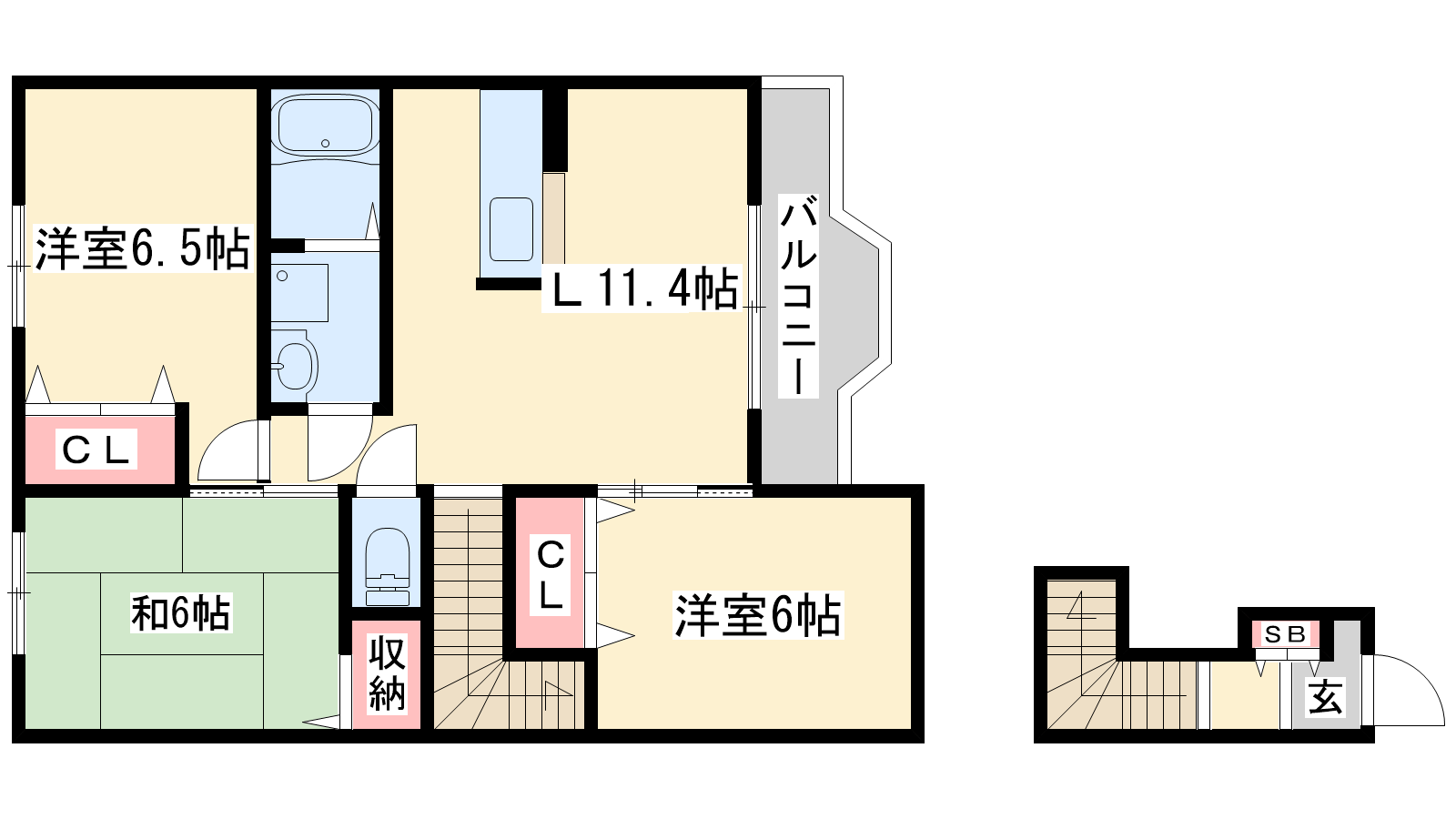 - LDK11.4帖、洋室6.5帖、洋室6帖、和室6帖