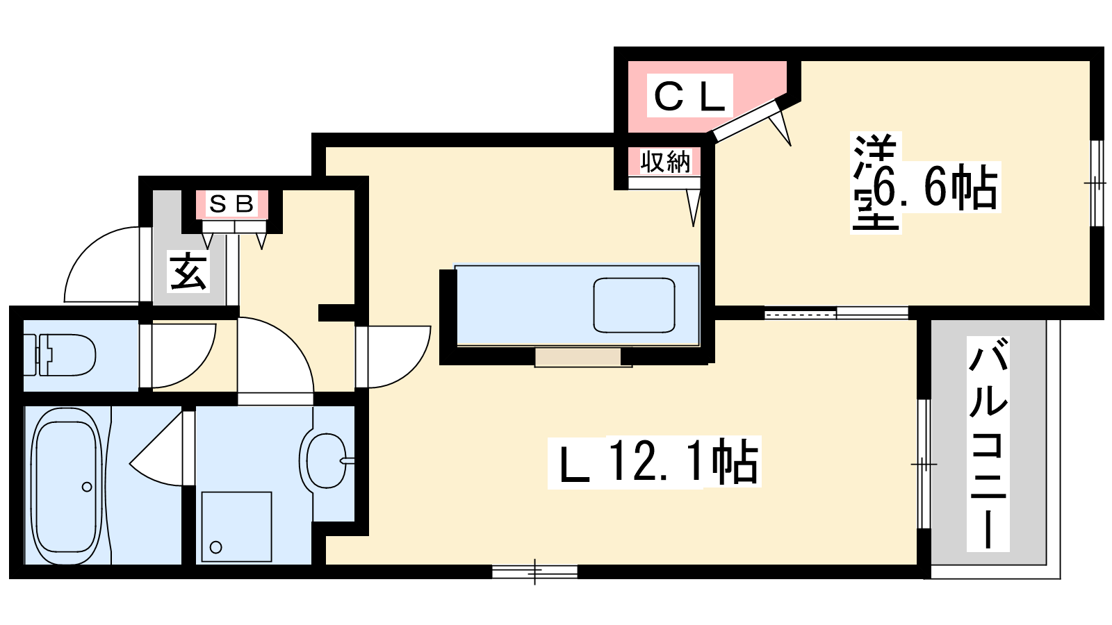 - LDK12.1帖、洋室6.6帖