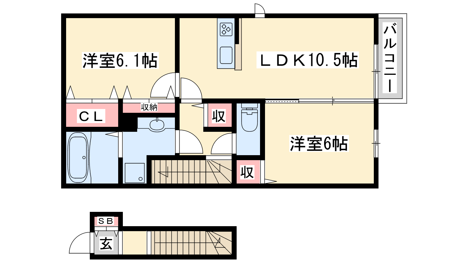 - LDK10.5帖、洋室6.1帖、洋室6帖
