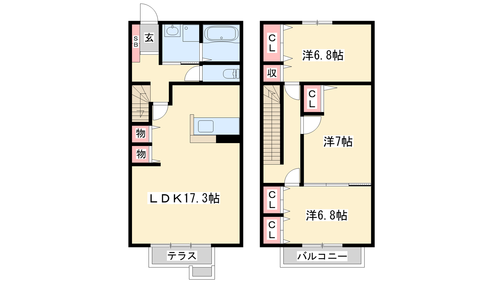 - LDK17.3帖、洋室7帖、洋室6.8帖、洋室6.8帖