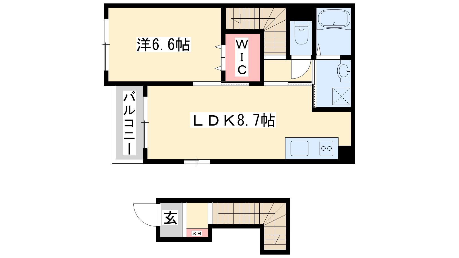 - LDK8.7帖、洋室6.6帖