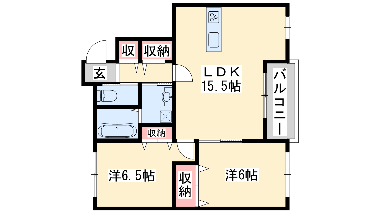 - LDK15.5帖、洋室6.5帖、洋室6帖