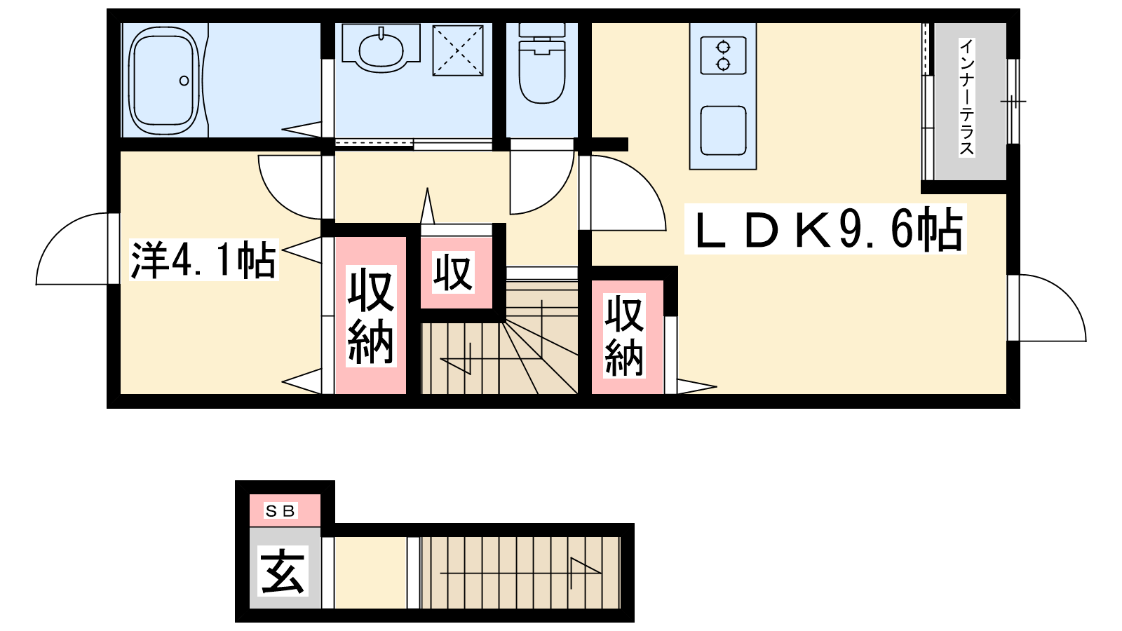 - LDK9.6帖、洋室4.1帖