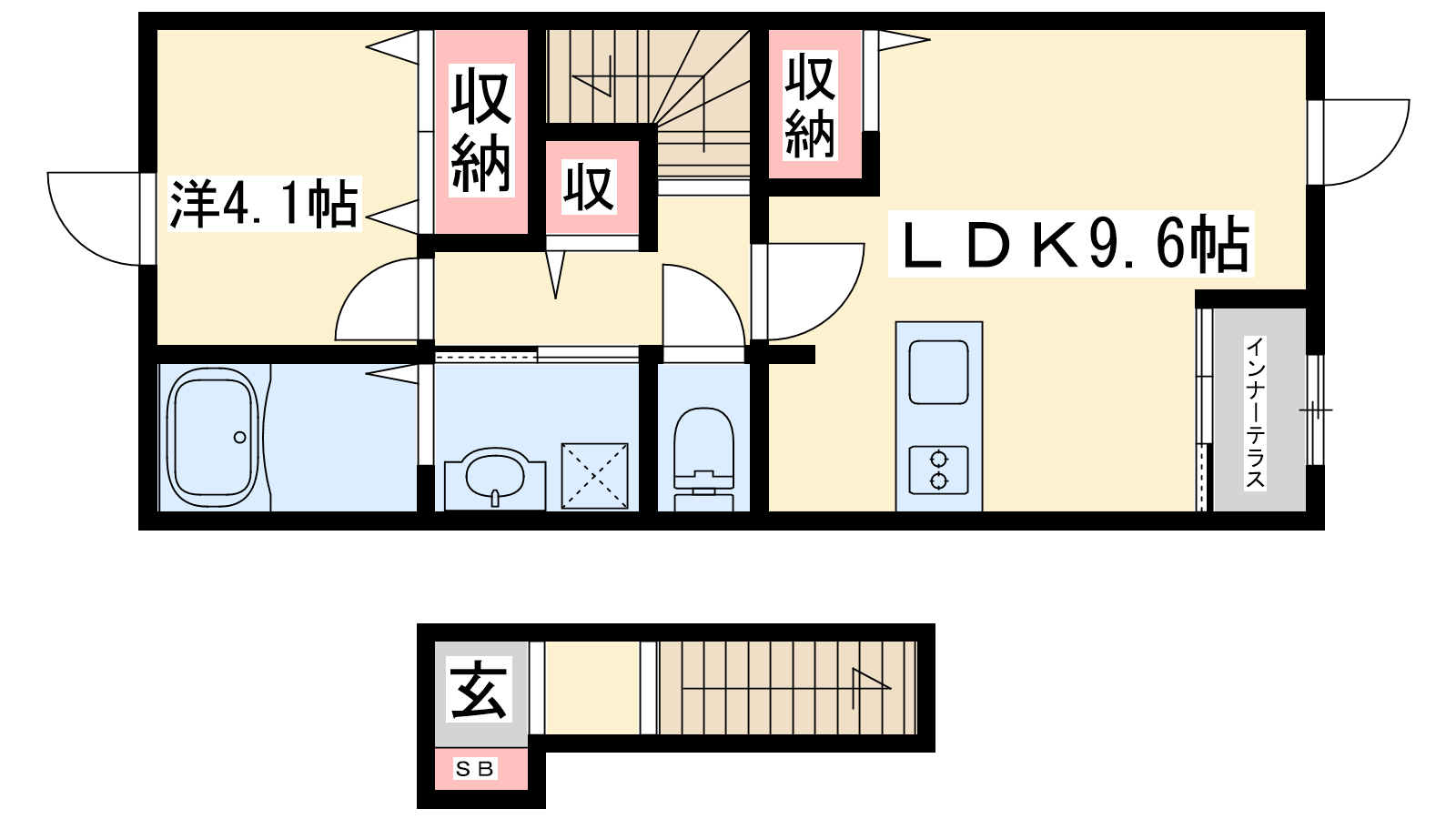 - LDK9.6帖、洋室4.1帖
