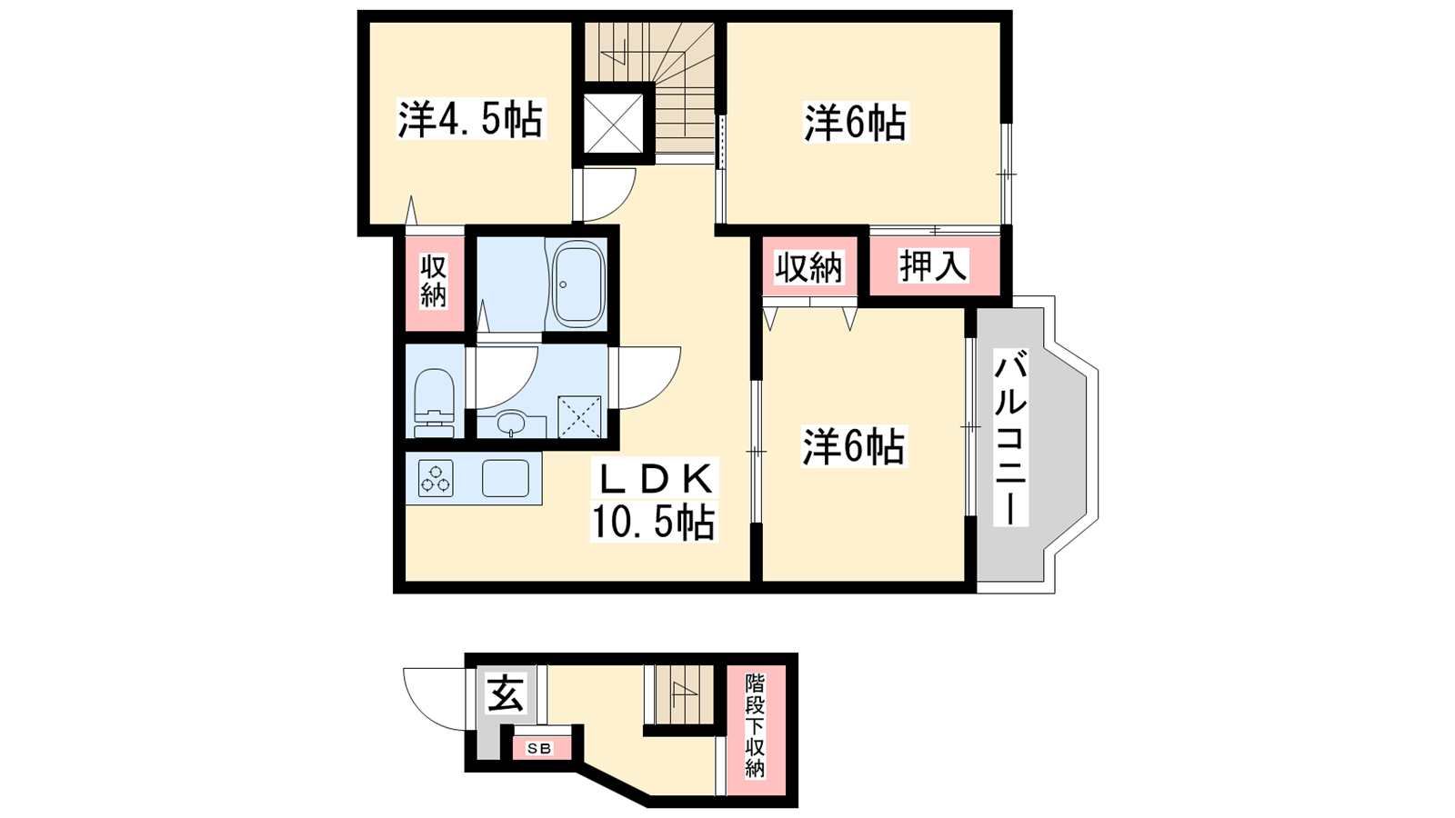 - LDK10.5帖、洋室6帖、洋室6帖、洋室4.5帖