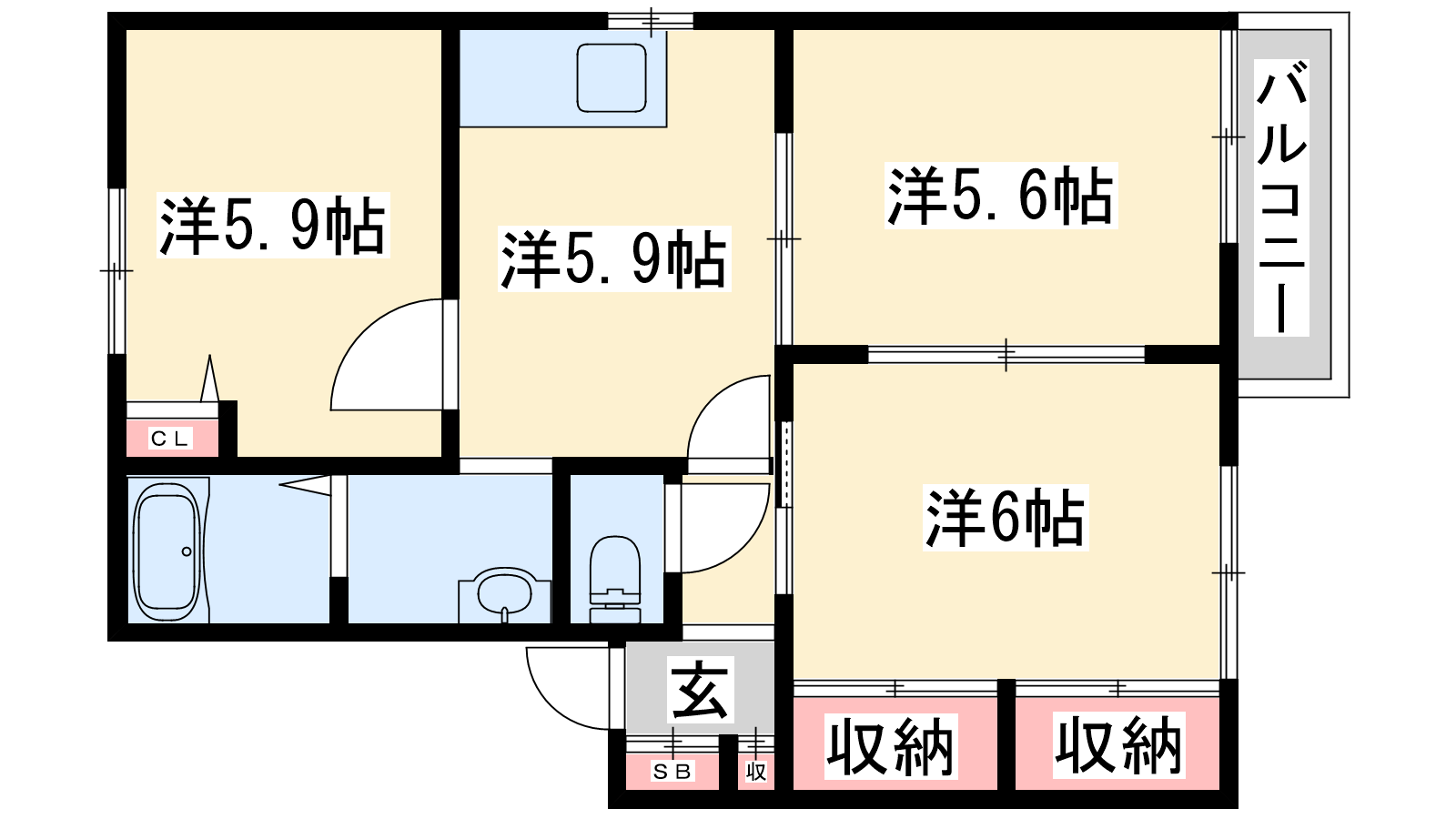 - K5.9帖、洋室6帖、洋室5.9帖、洋室5.6帖