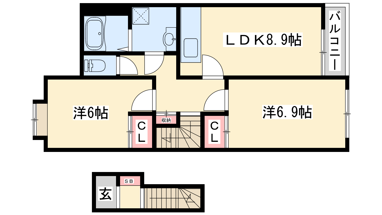 - LDK8.9帖、洋室6.9帖、洋室6帖
