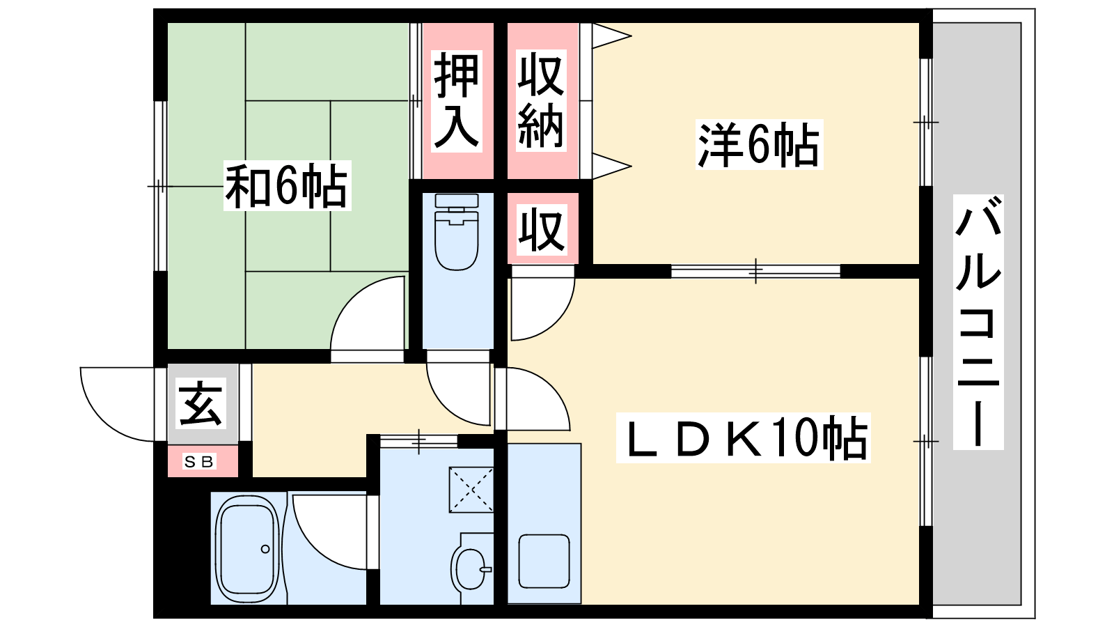 - LDK10帖、洋室6帖、和室6帖